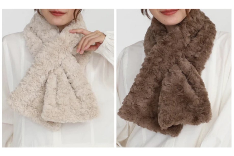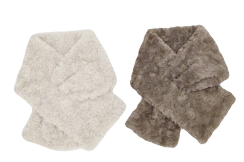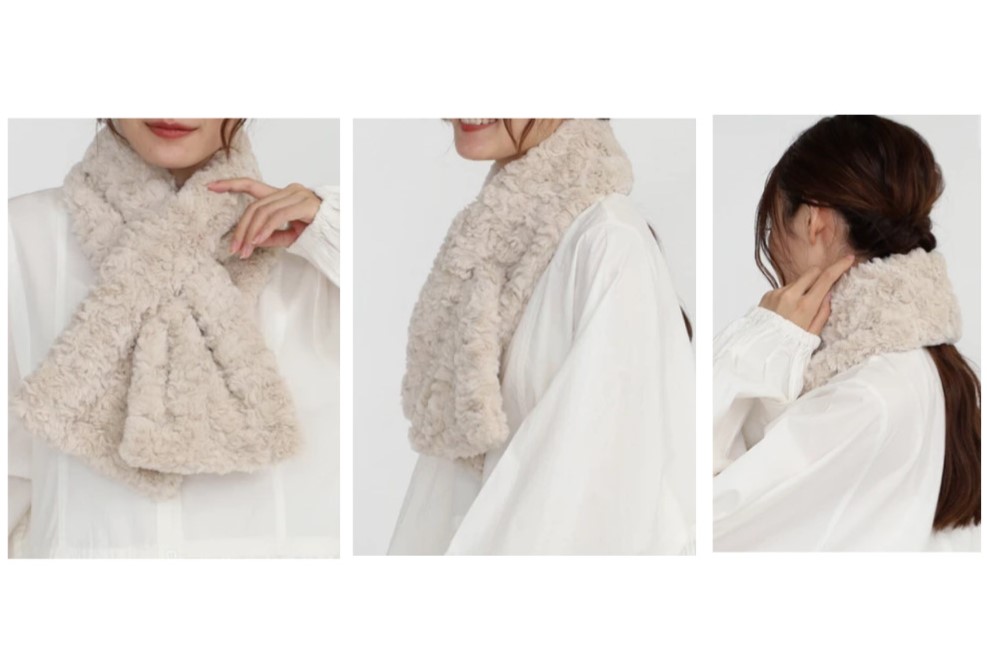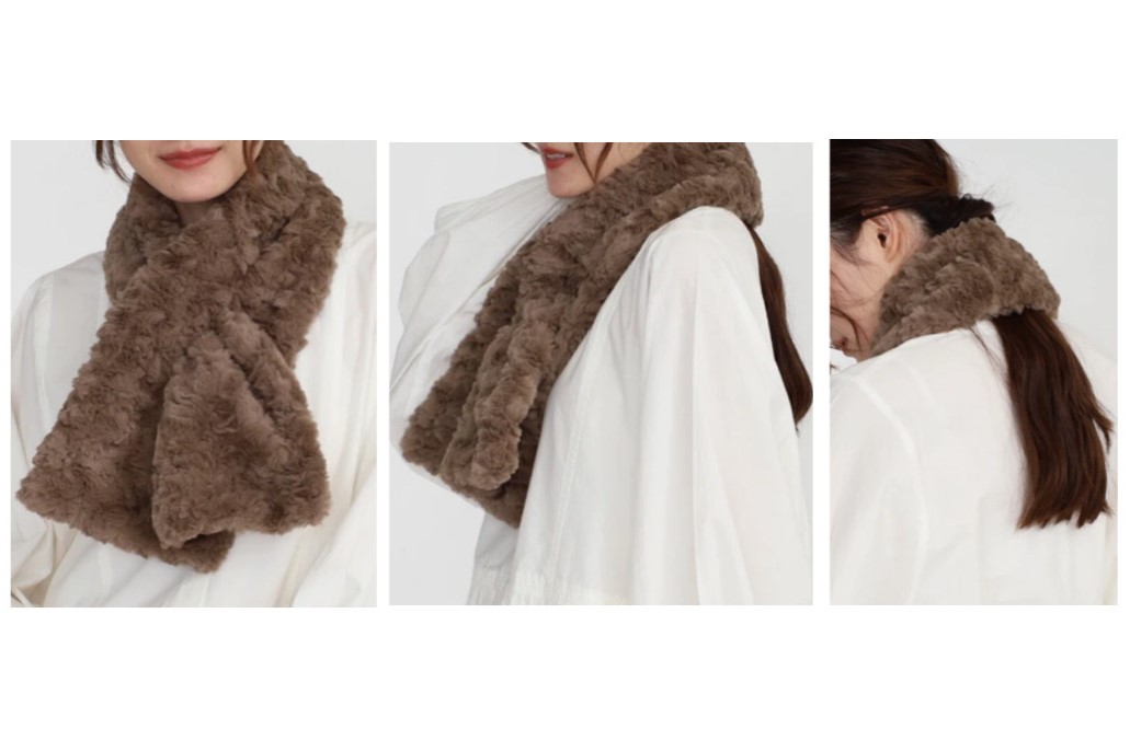 ループに通すだけで、かんたんに巻けるボアマフラー。