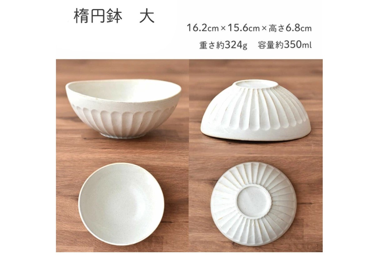 楕円鉢は、器の外側に規則性のあるしのぎ模様があり、洋食器のような雰囲気を持っています。