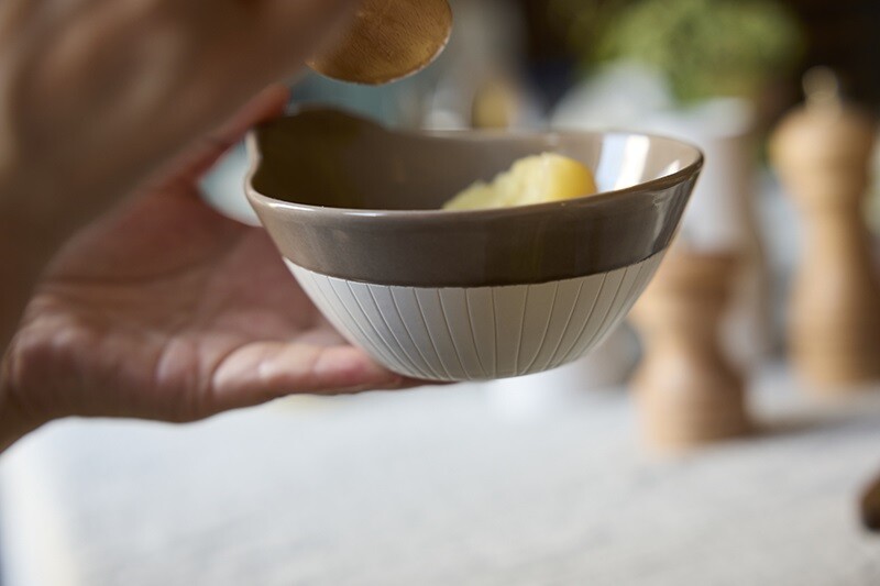 上下異なる2 色のコントラストがモダンな印象の食器です。