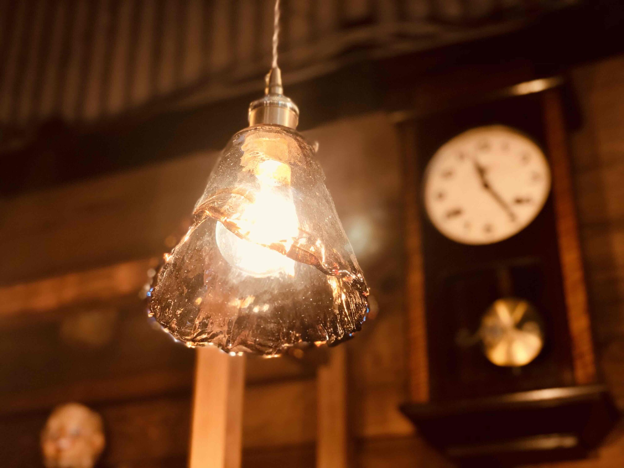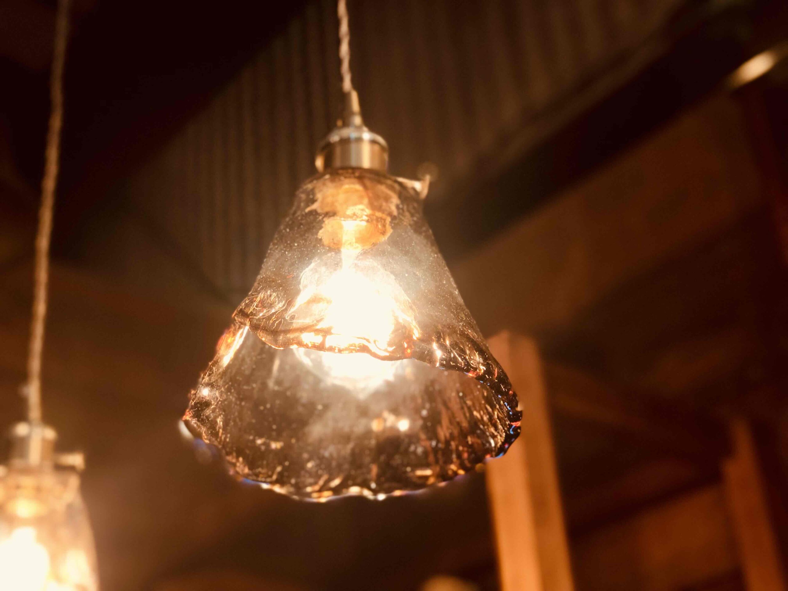 アンバーガラスペンダントランプ リップド