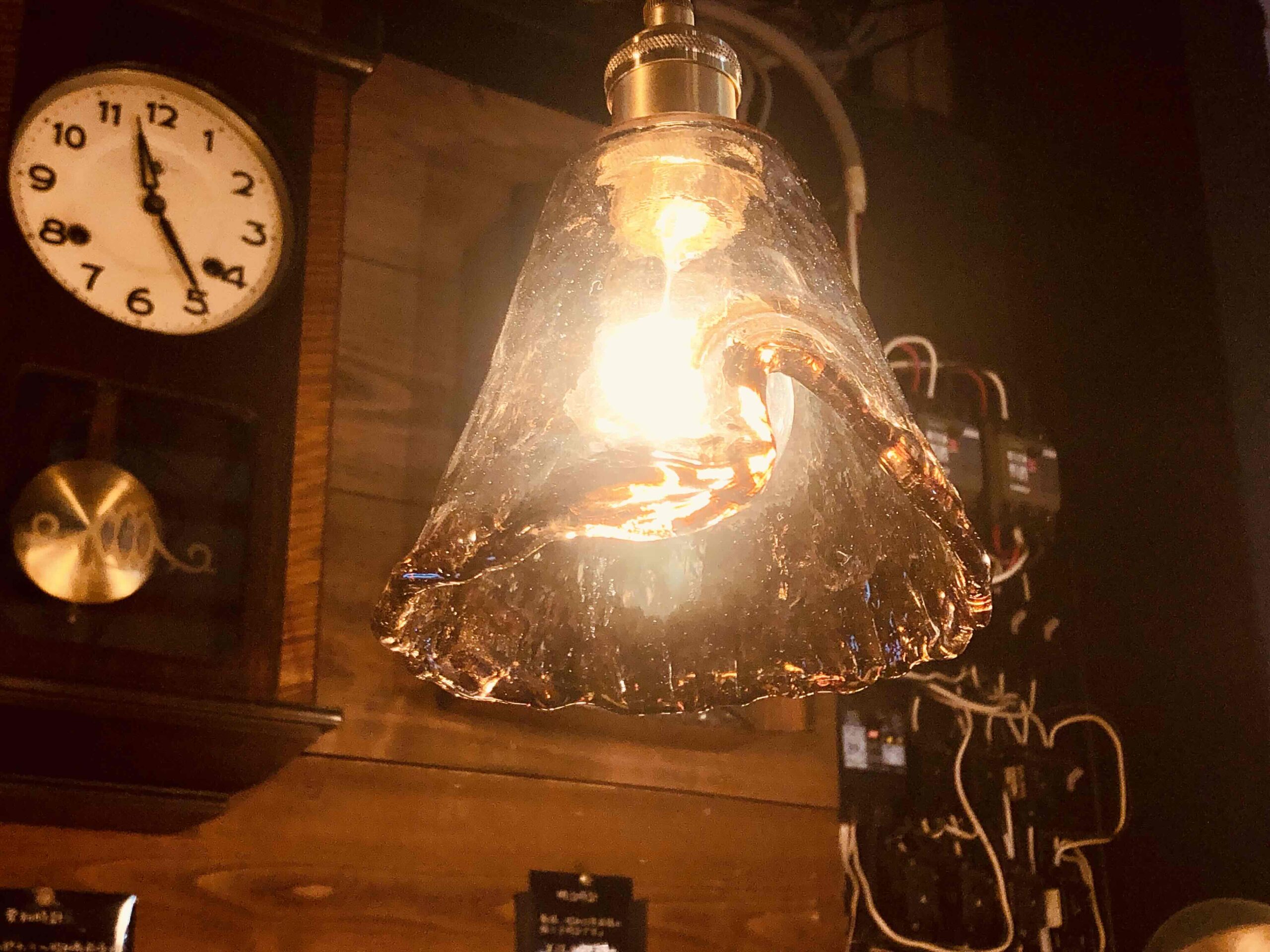 アンバーガラスペンダントランプ コーン