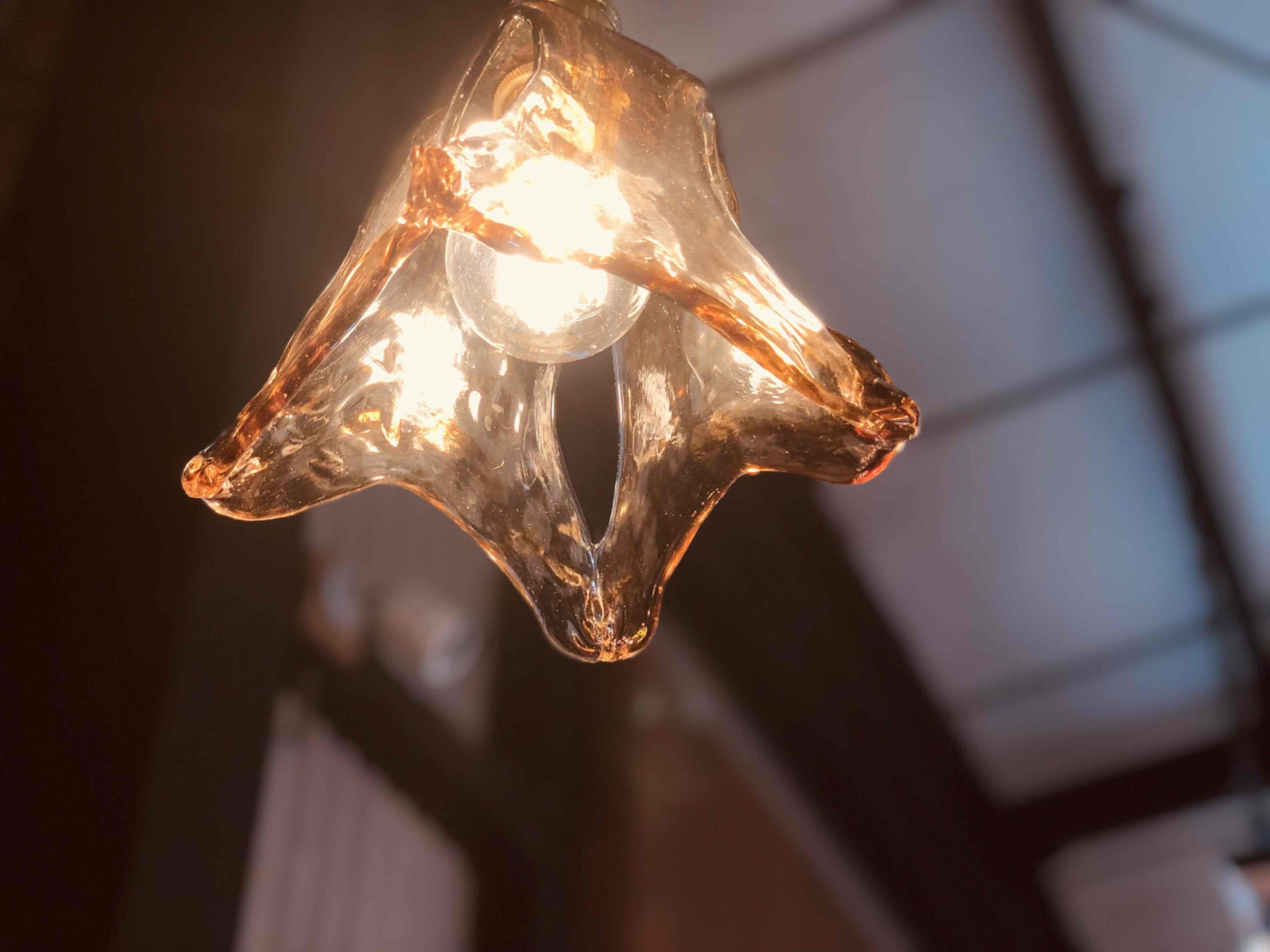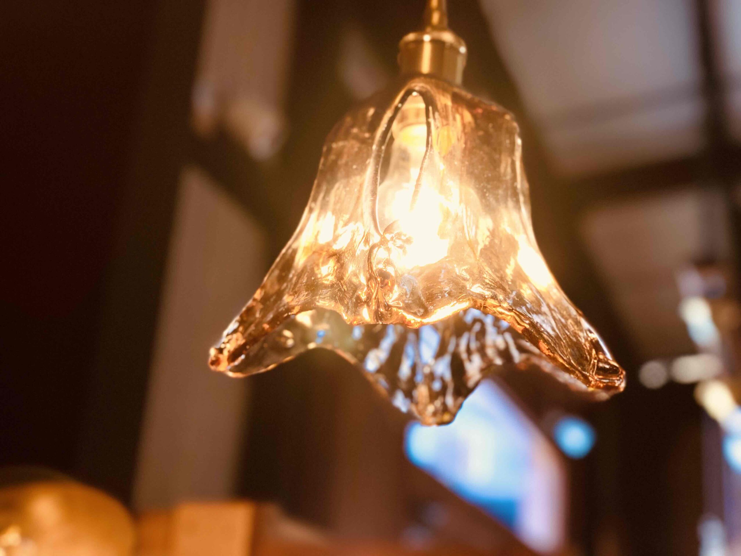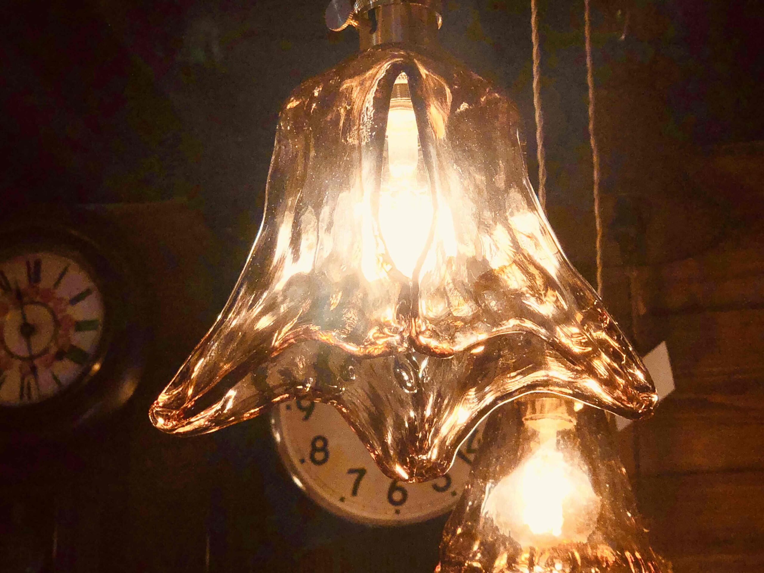 アンバーガラスペンダントランプ リップド