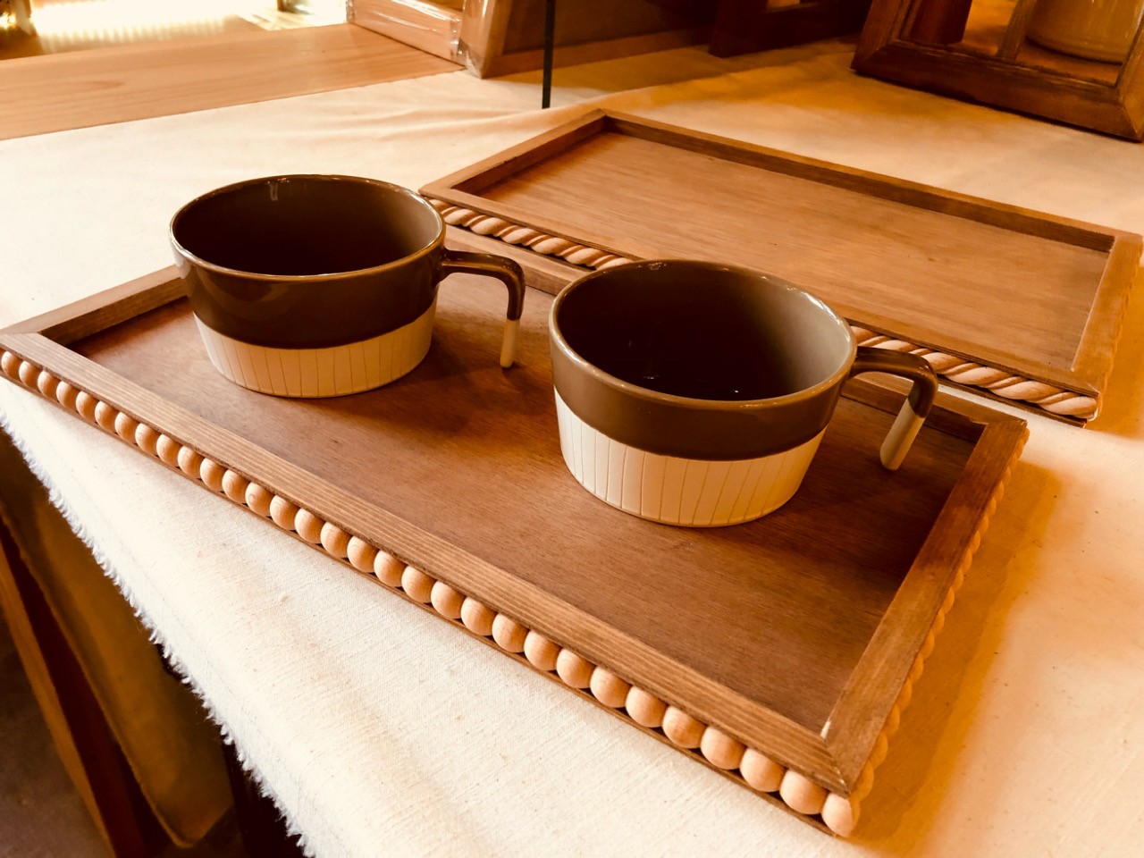 ティータイムに、マグカップなど運ぶトレイとしてはもちろんのこと、