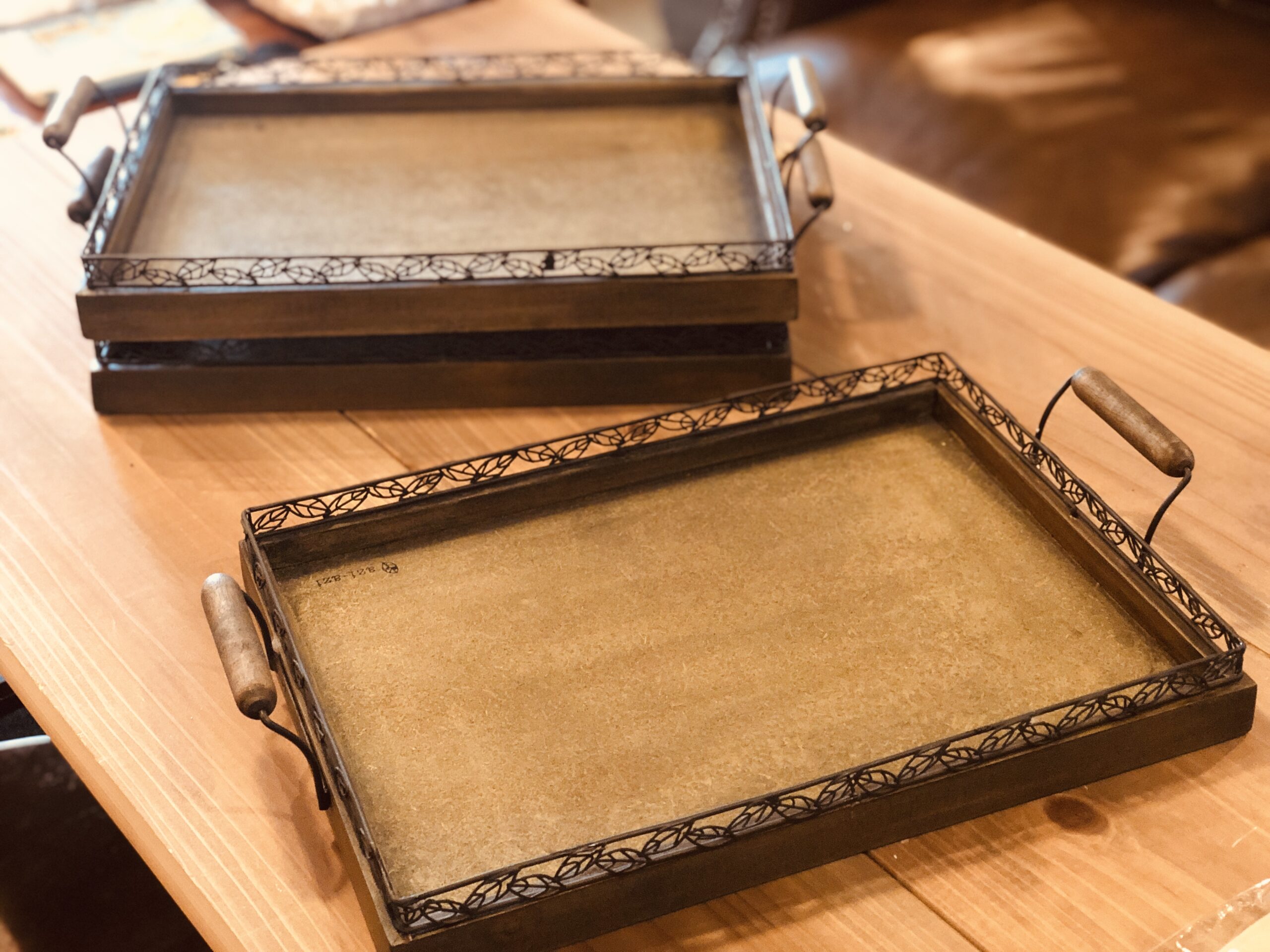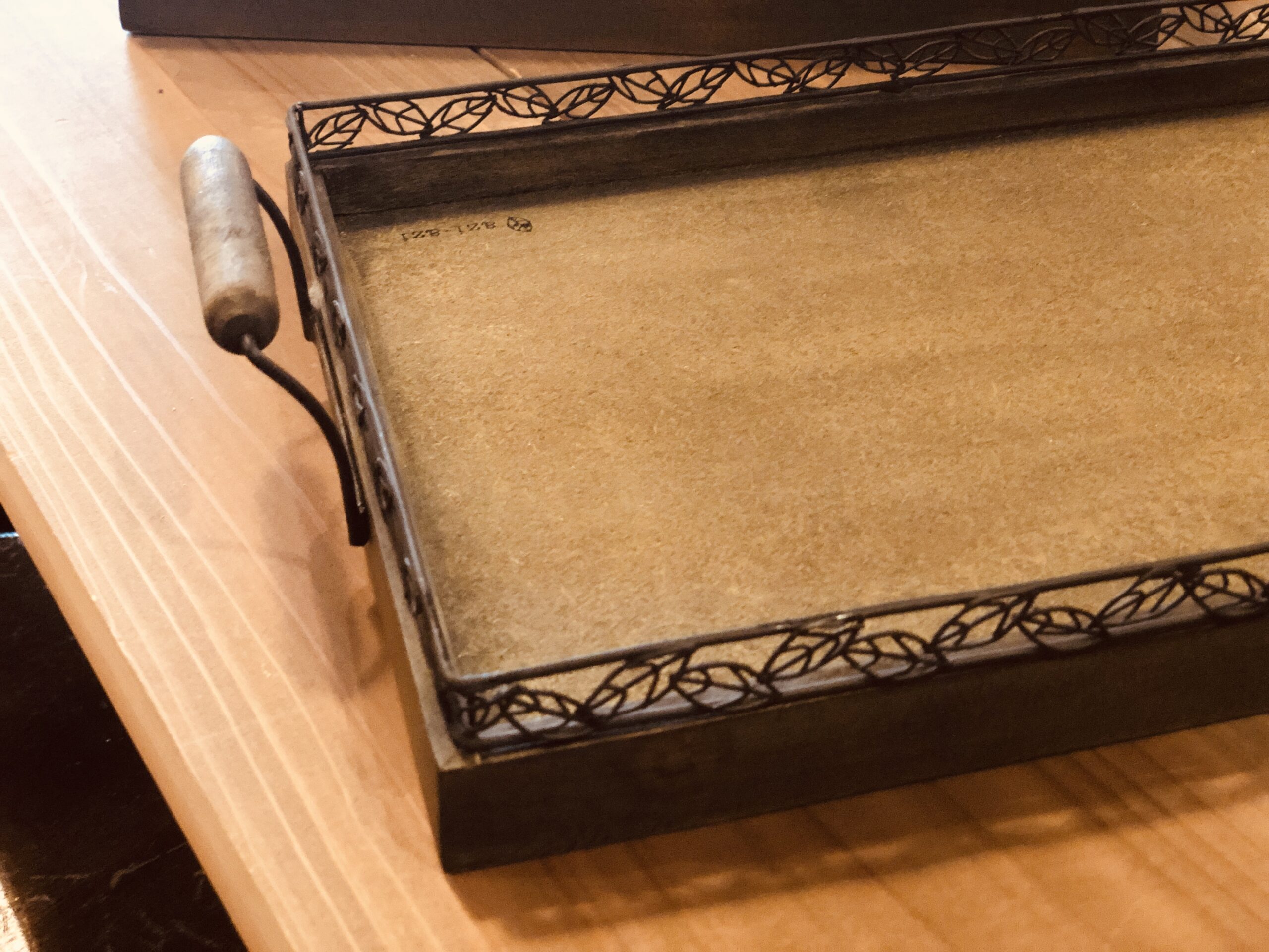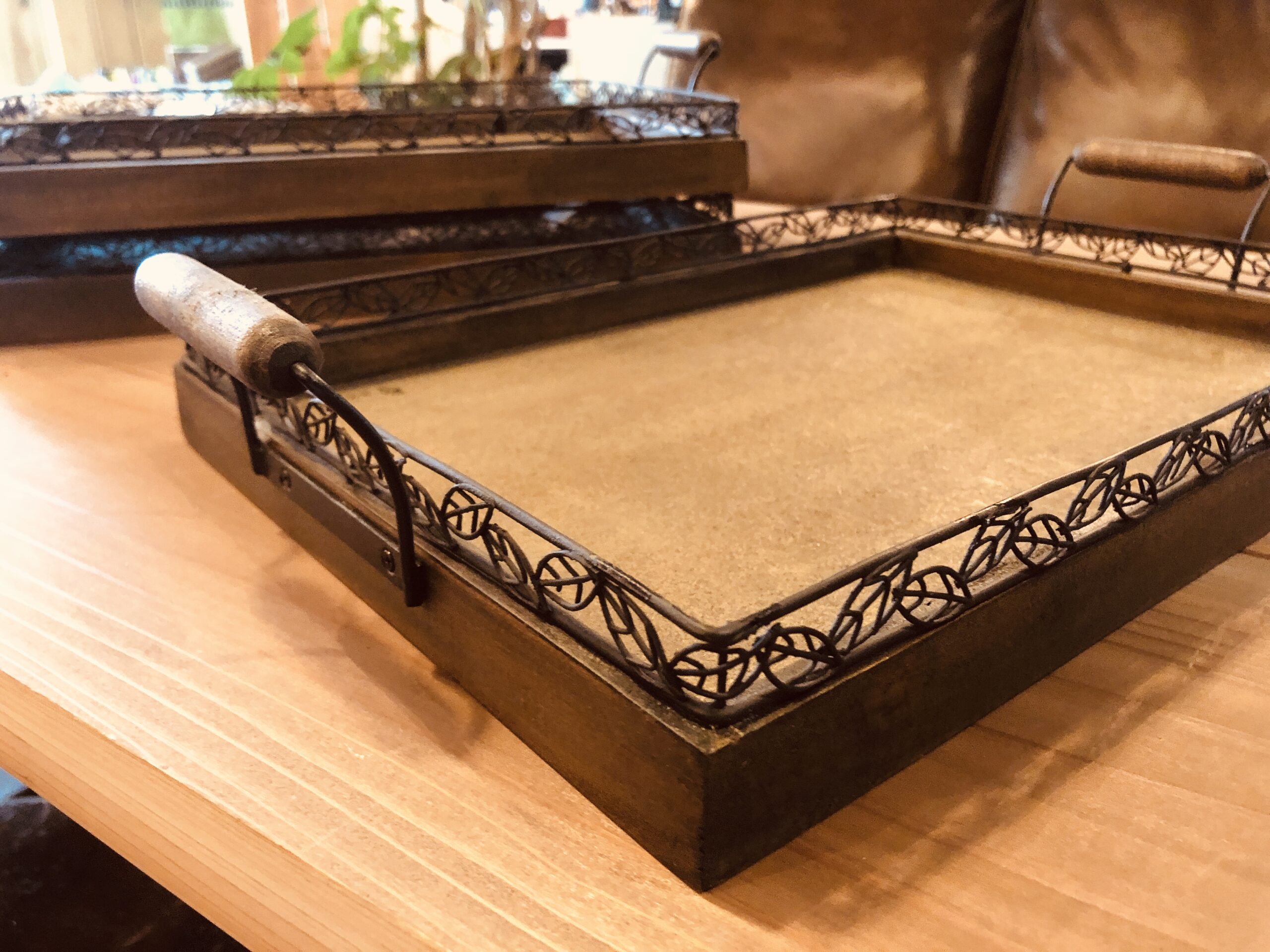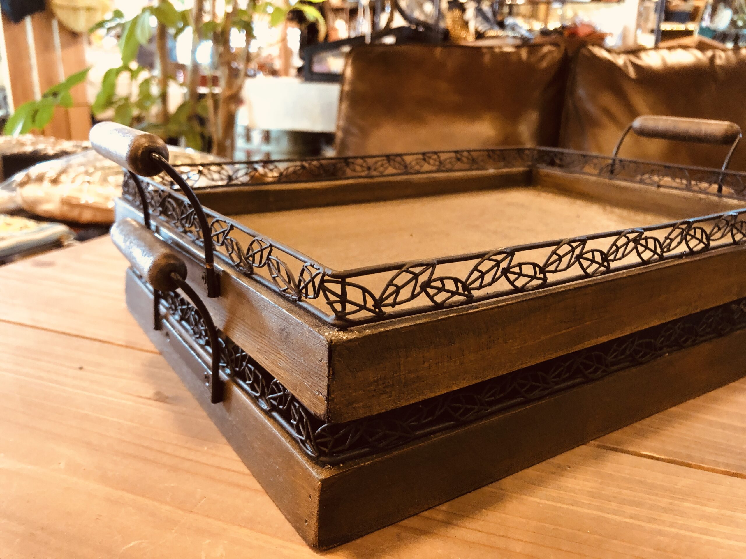 ワイヤーリーフの飾りが繊細で美しいトレイ。