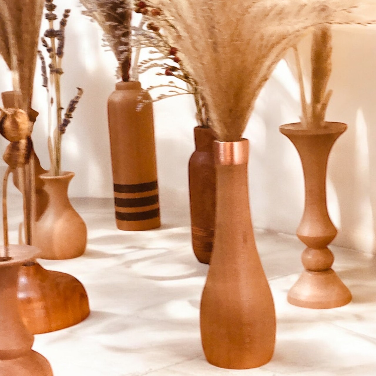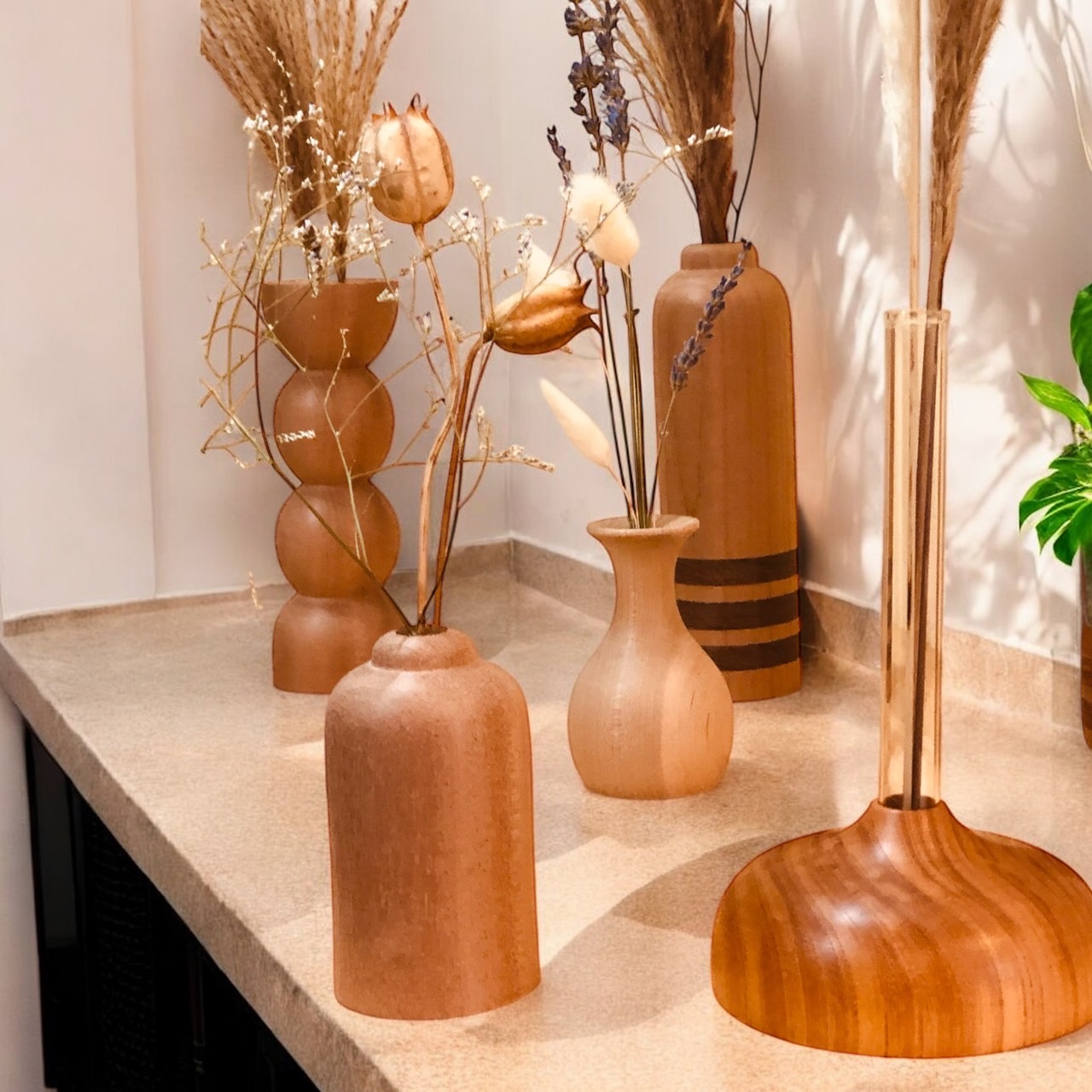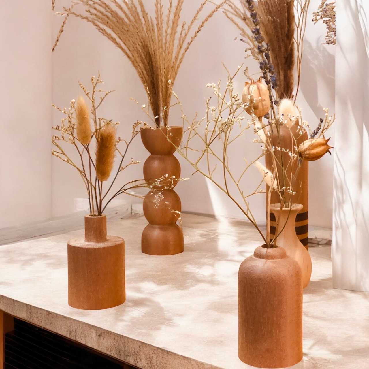 ウッドフラワーベースにディスプレイして、