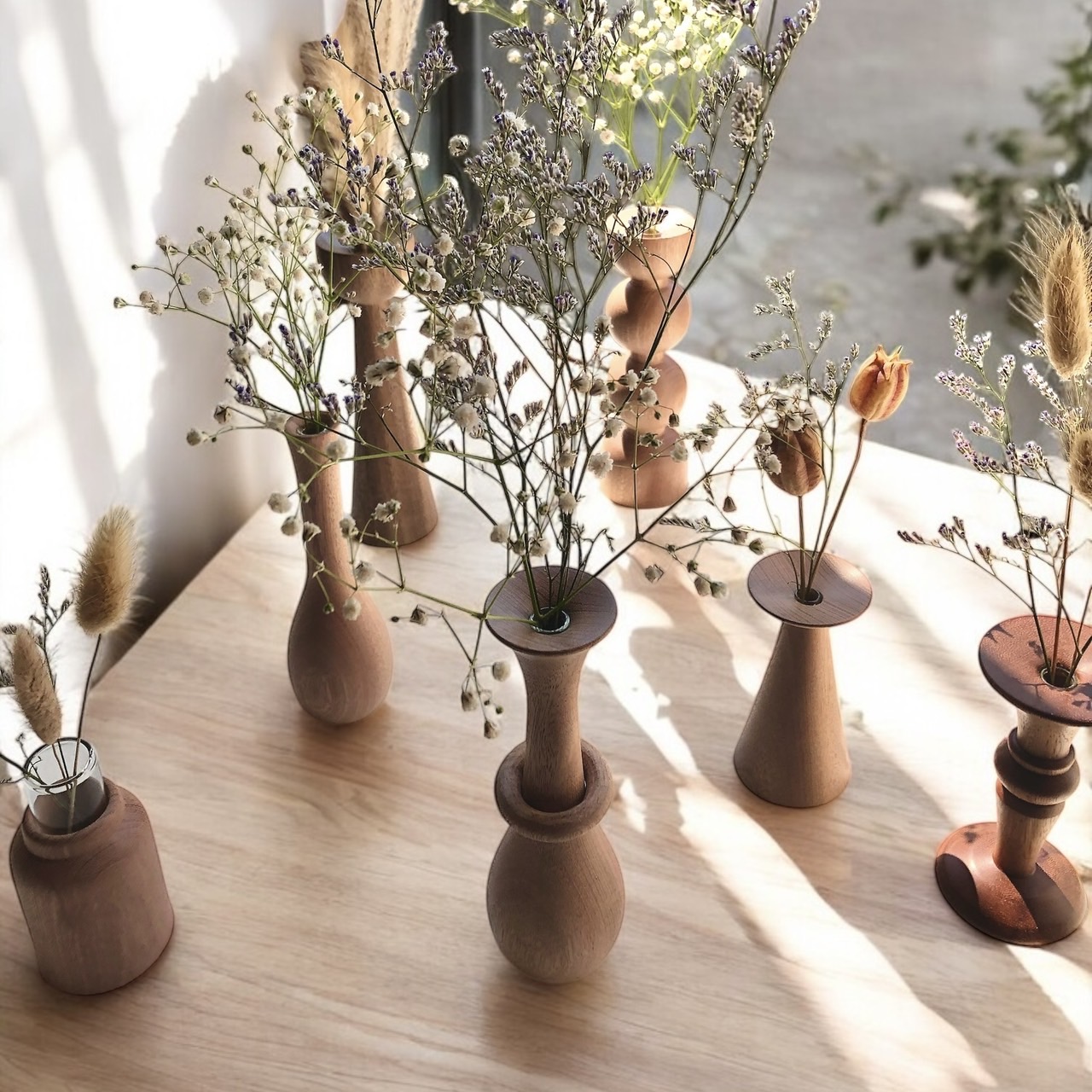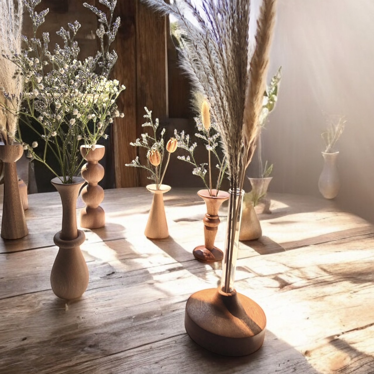 ウッドフラワーベースにディスプレイして、