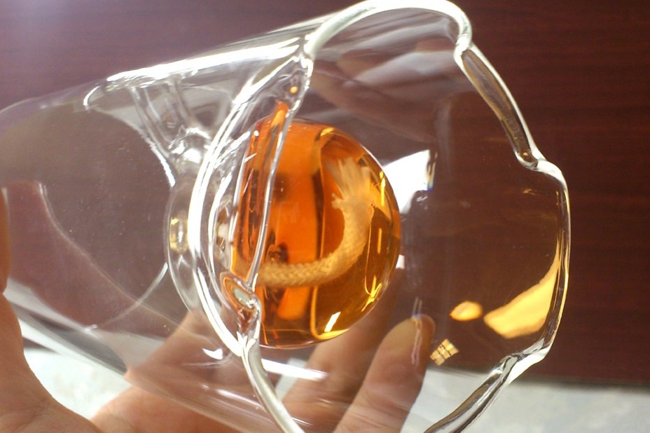 注入口の反対から見ると、球体が浮かんで見えます。