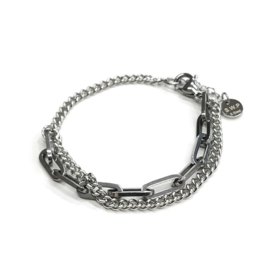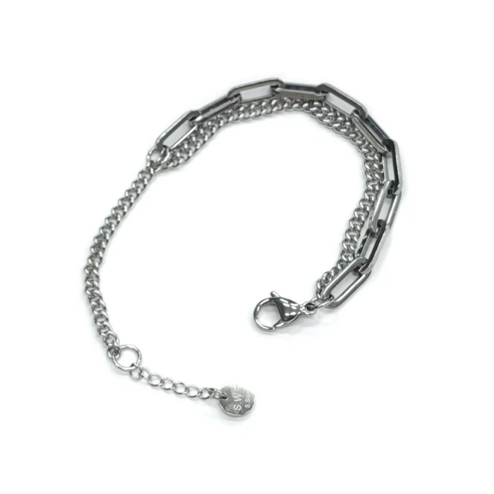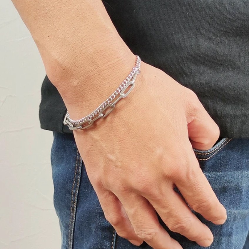金属アレルギーを起こしにくく人体に優しいステンレススチール素材を使用したチェーンブレスレット。
