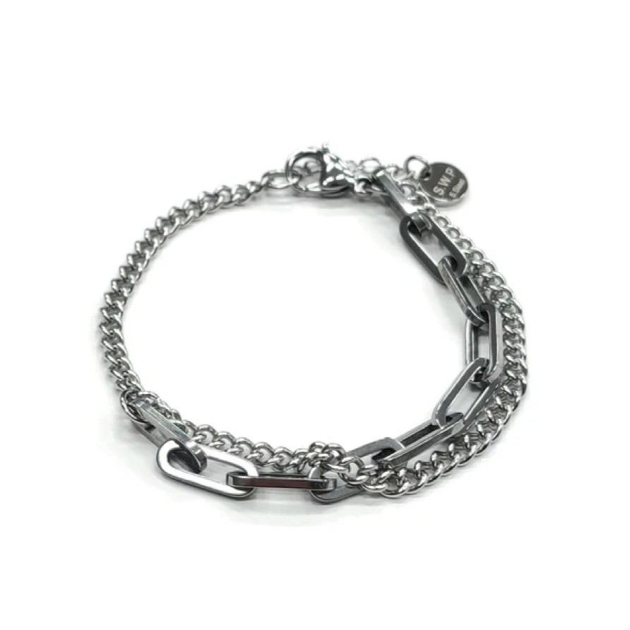 細身のチェーンにオーバル形状のチェーンを組み合わせた2連タイプのデザイン。