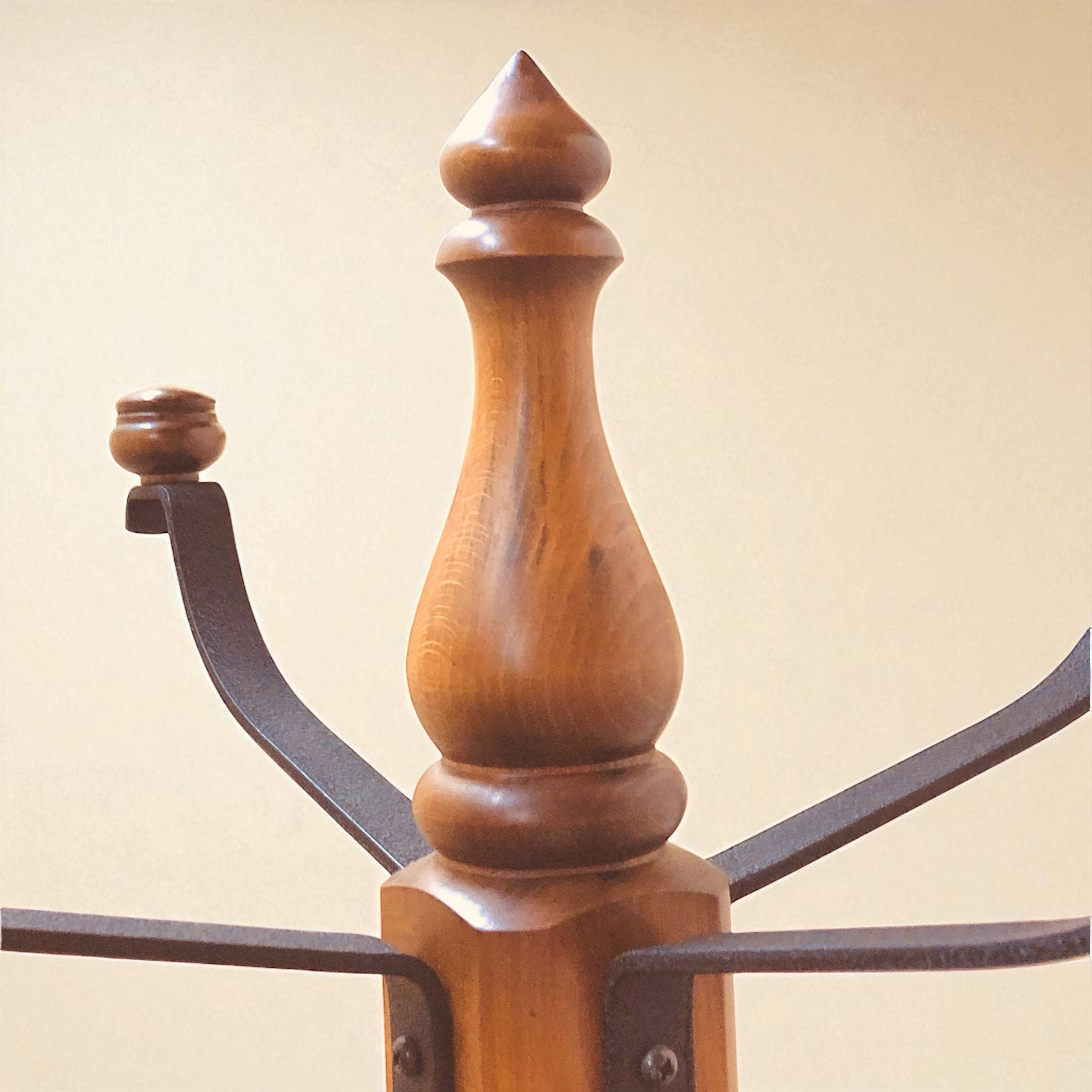 支柱に金具のフックを施し、衣類や帽子・ハンガーをひっかけることができます。