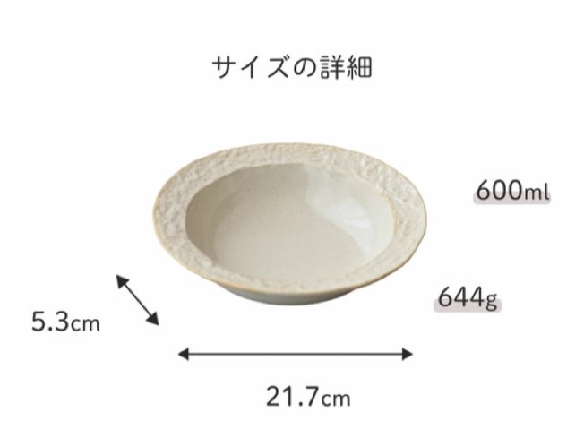 ◆商品サイズ:Φ21.7cm×H5.3cm 600ml 重量:約644g