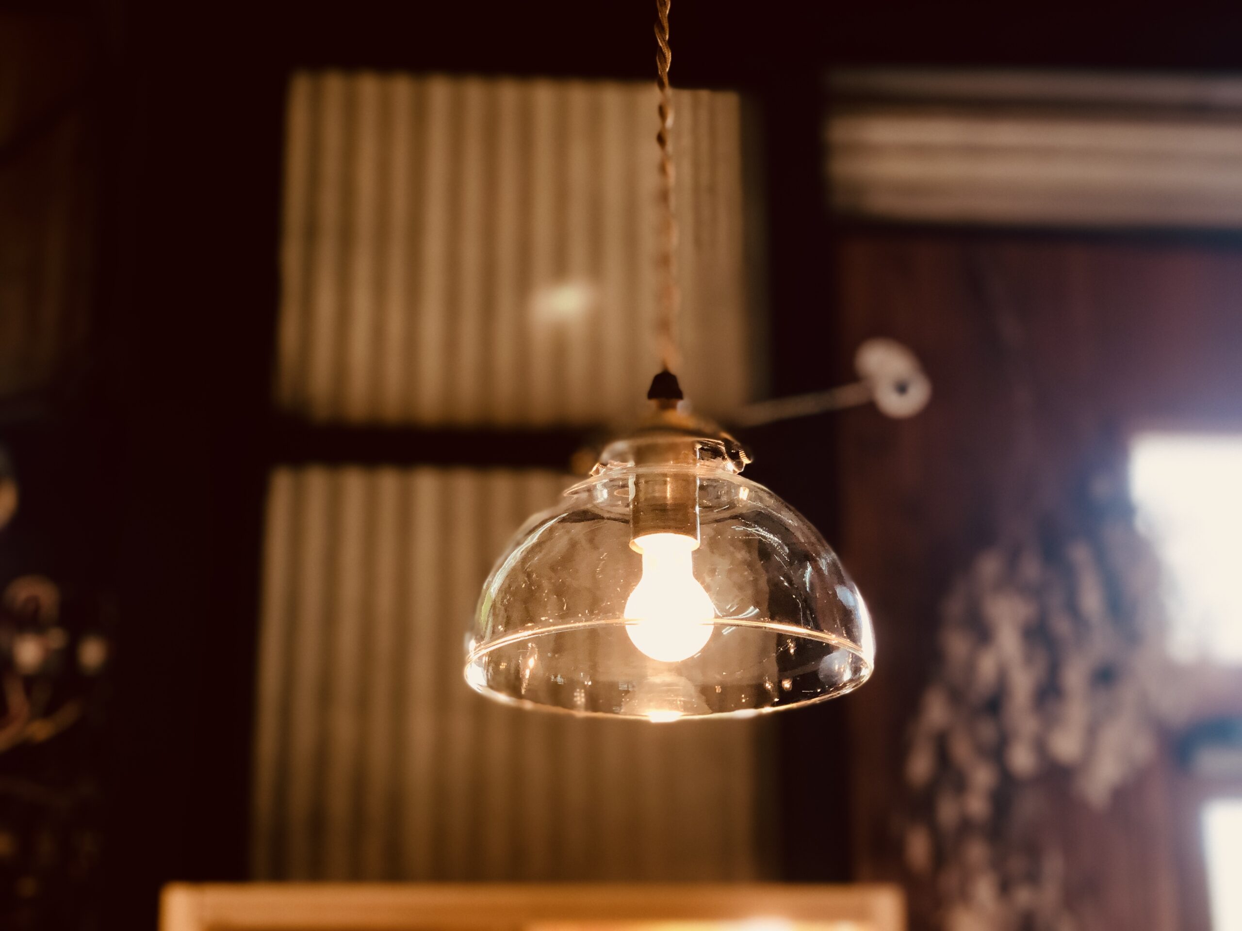 ガラスは光を通す素材なので、電球を点灯させると空間全体が明るくなります。