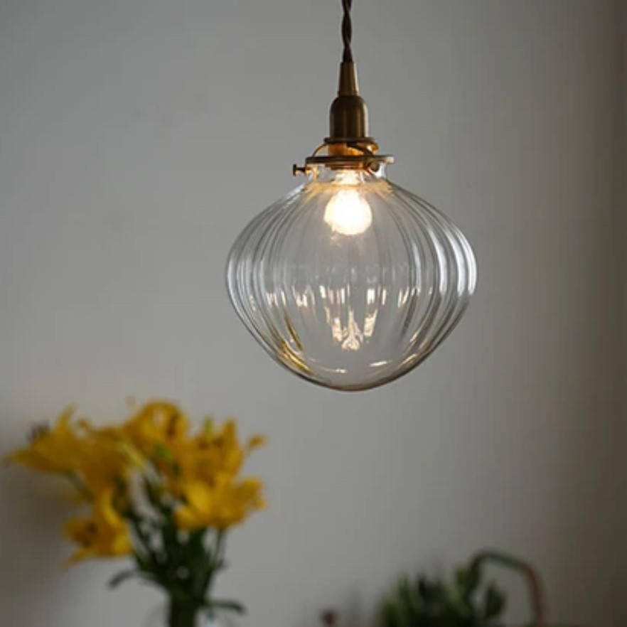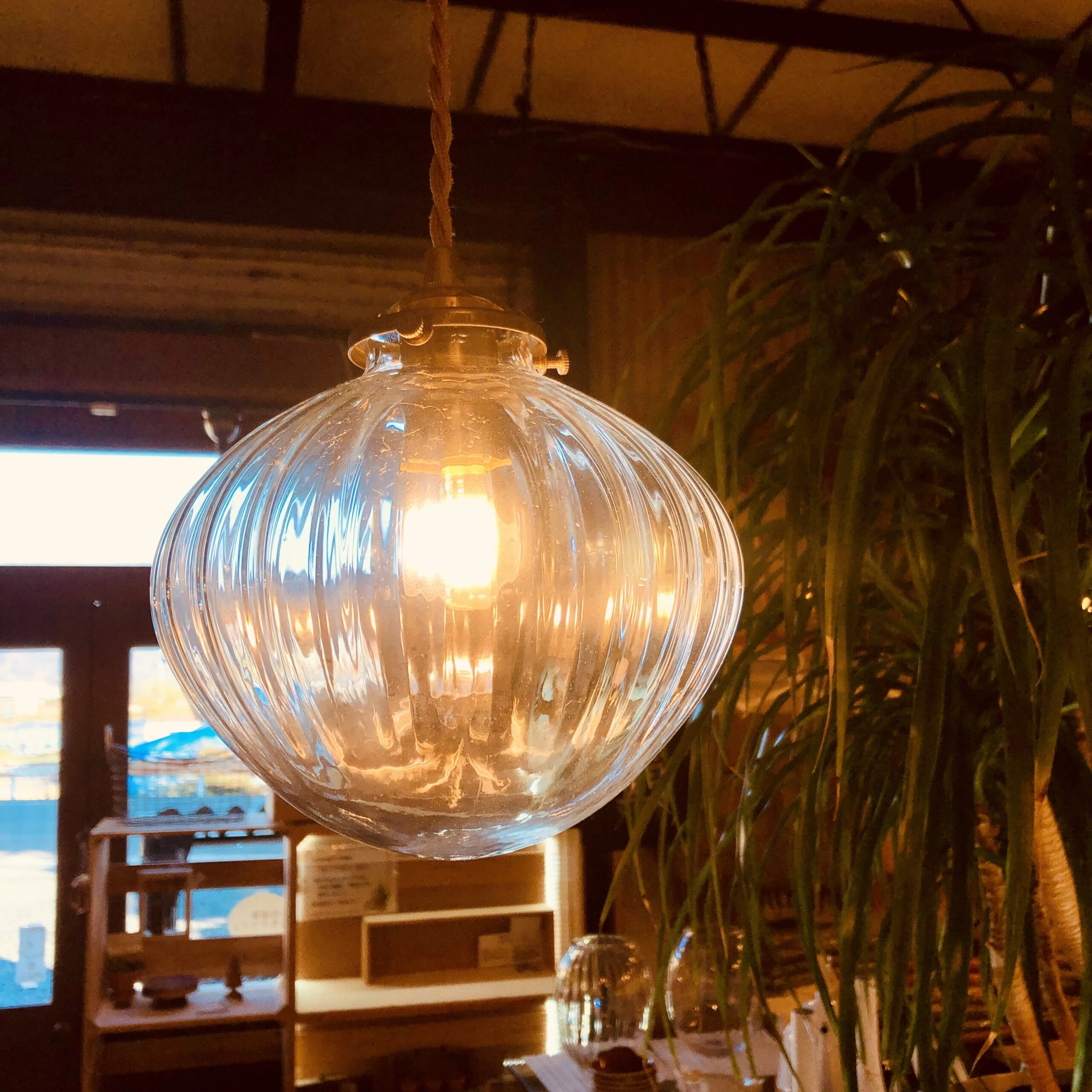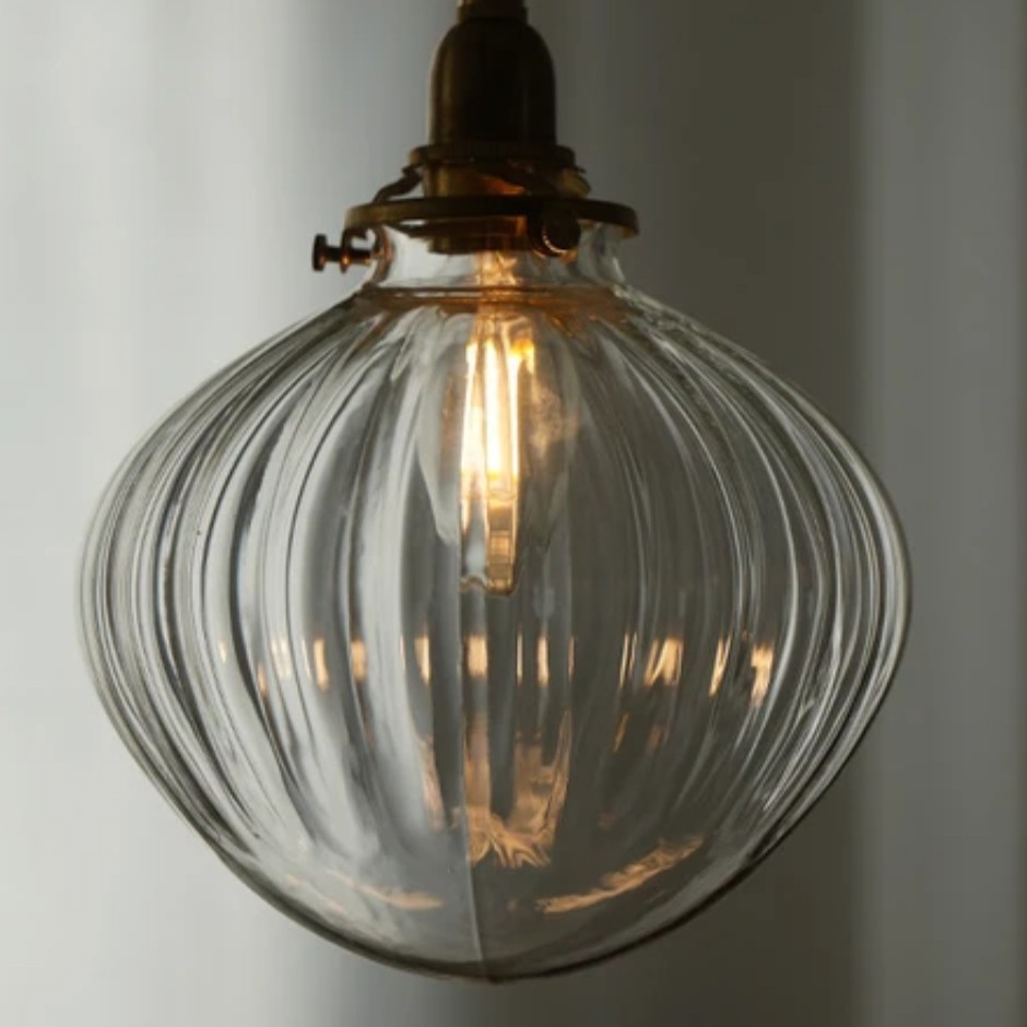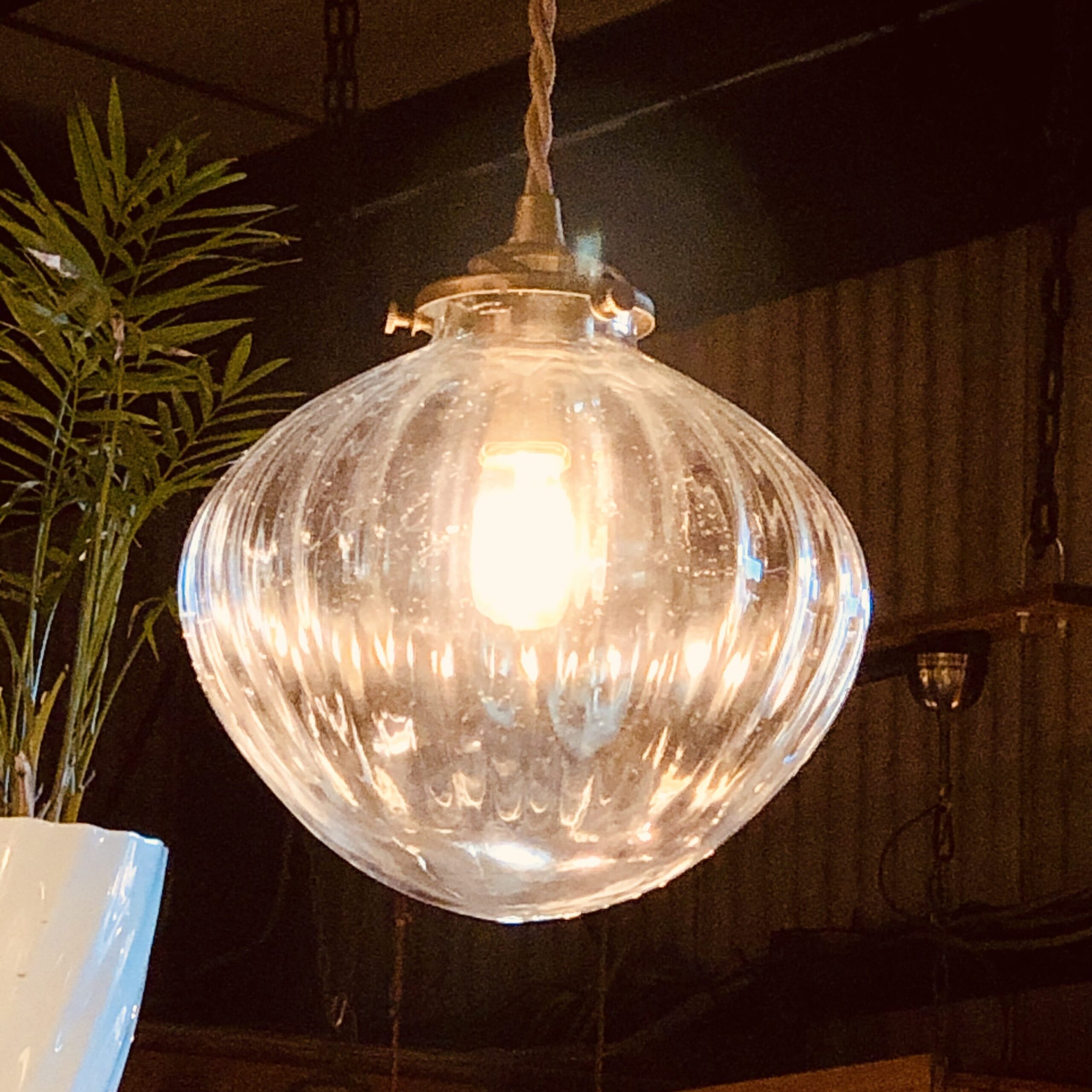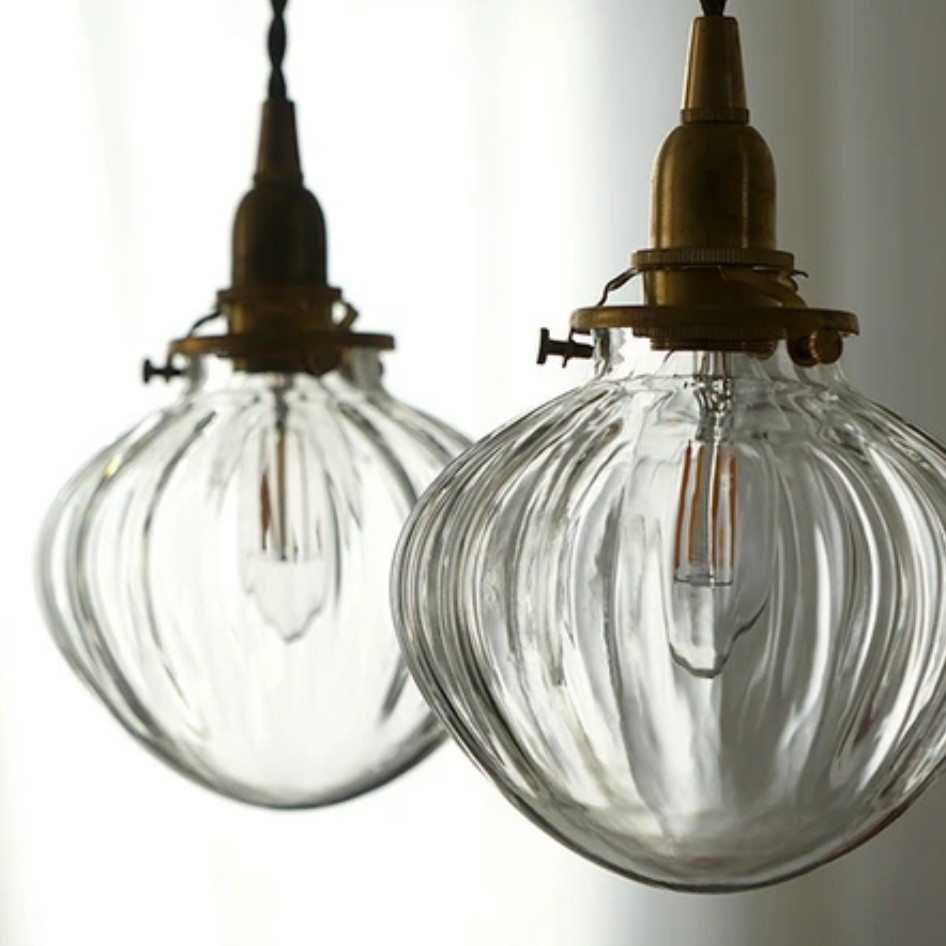 電球からの光がクリアガラスの凹凸に反射して、