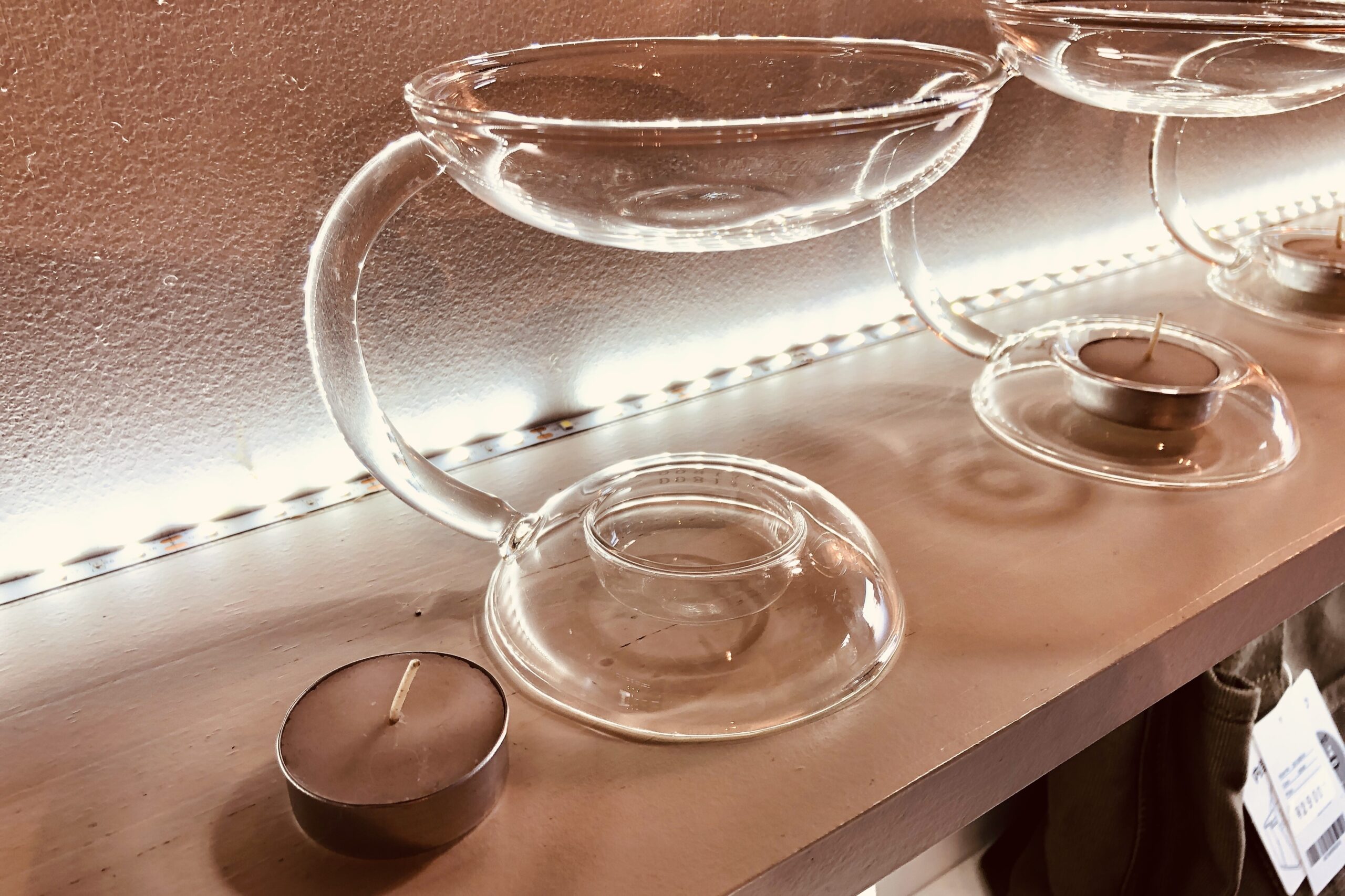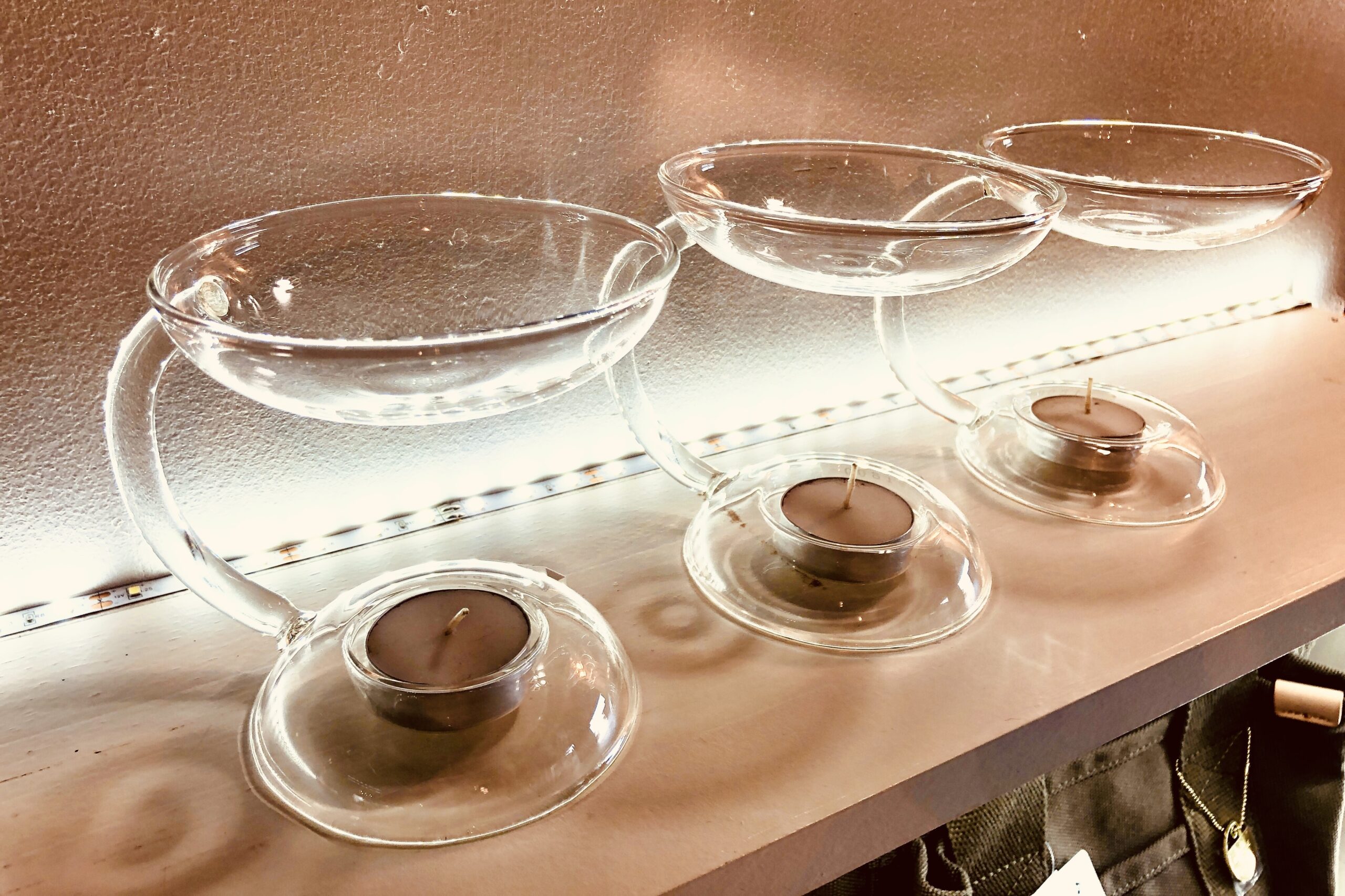 キャンドルをホルダーに置くと上のお皿で温められたアロマオイルが香る、癒しアイテム。