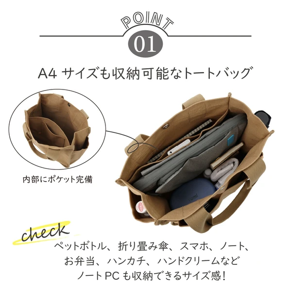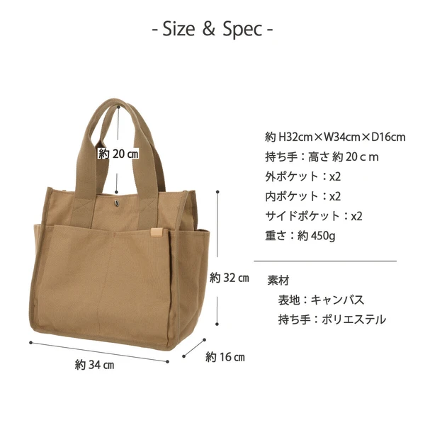 キャンバストート 両サイドポケット