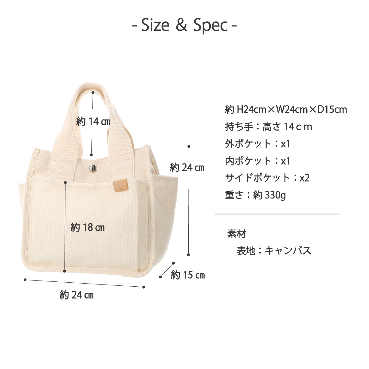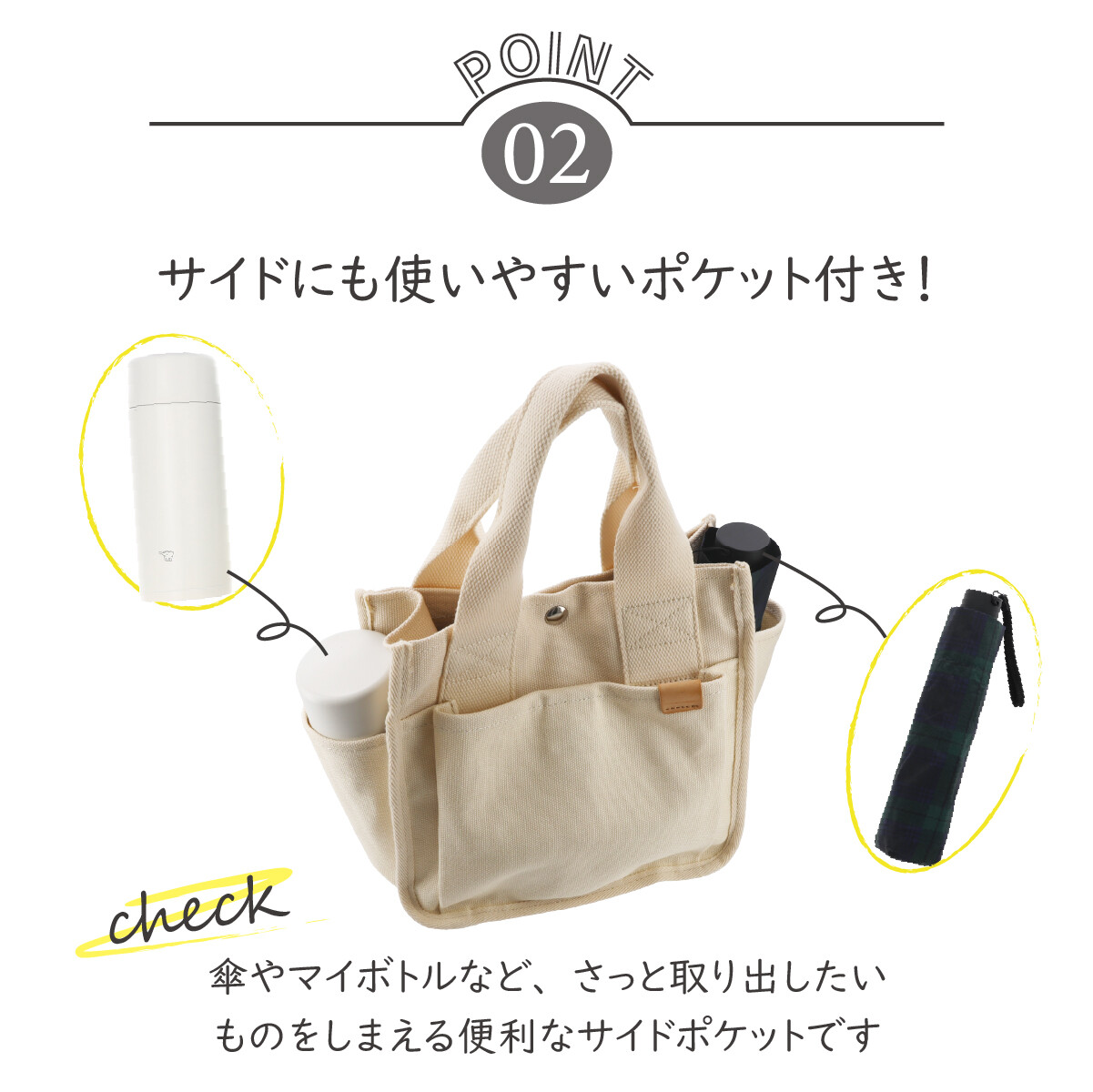 キャンバストート 両サイドポケット