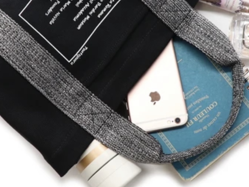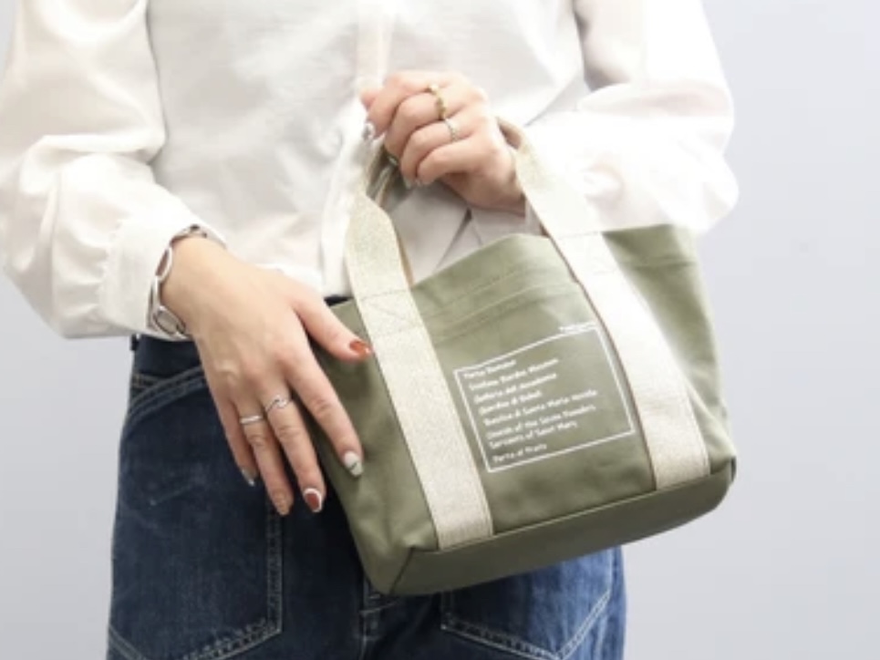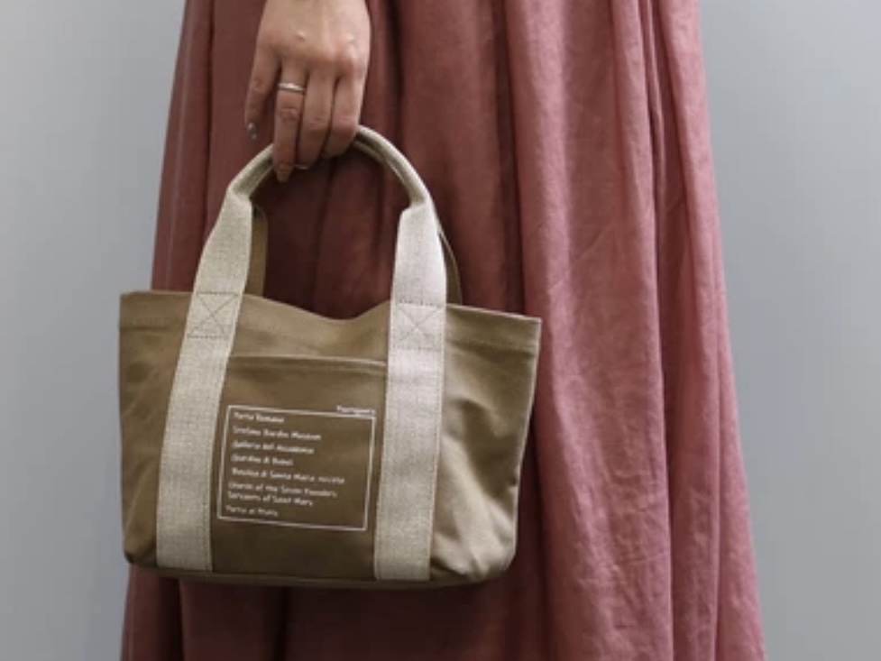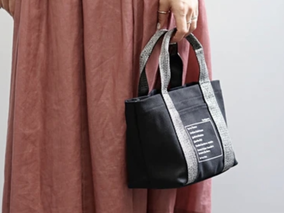 ラメハンドルが高見えし、カジュアルになりがちのキャンバストートも大人カジュアルを演出してくれます。