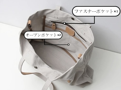 ・持ち手は帆布の上に牛革を使用で、丈夫に使って頂けます。