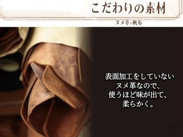ヌメ革の持ち手も、ハンドメイドのような味わいの一つです。
