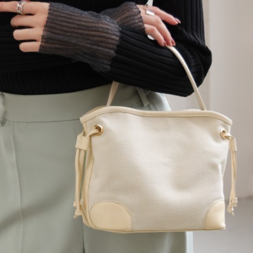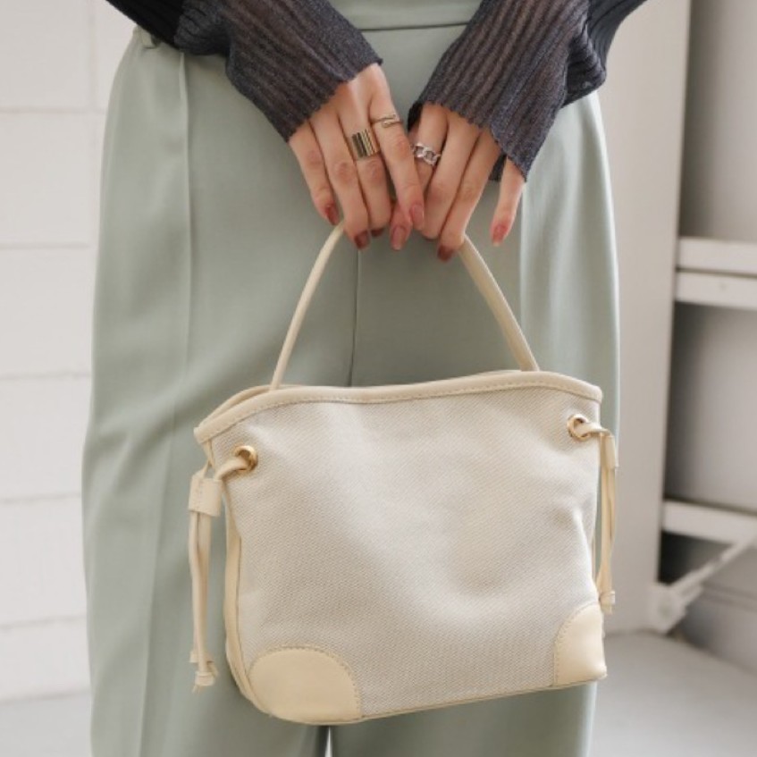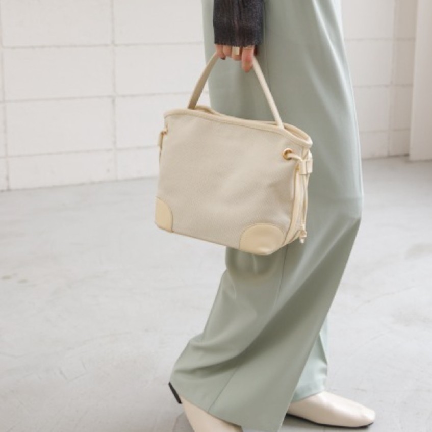 キャンパス地×合皮 ワンハンドル2WAYバッグ
