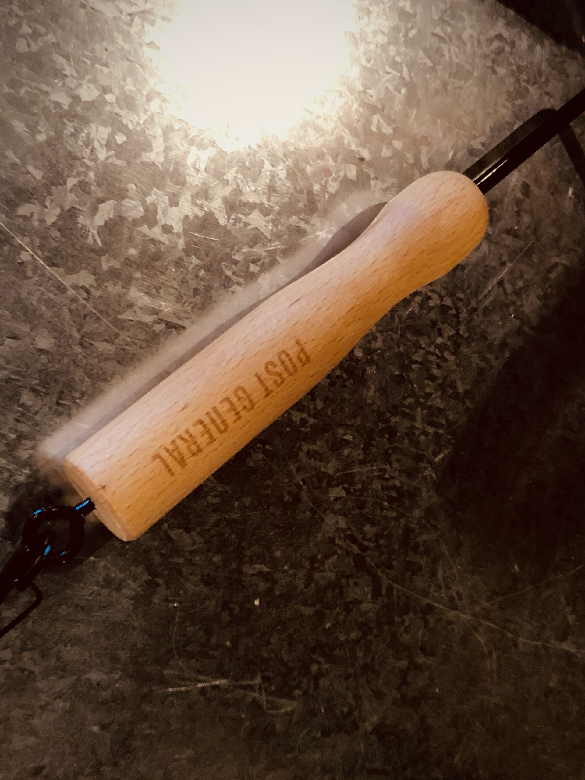 木の素材感を活かしたビーチ材の持ち手に、太めのロッドが組み合わされています。
