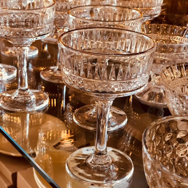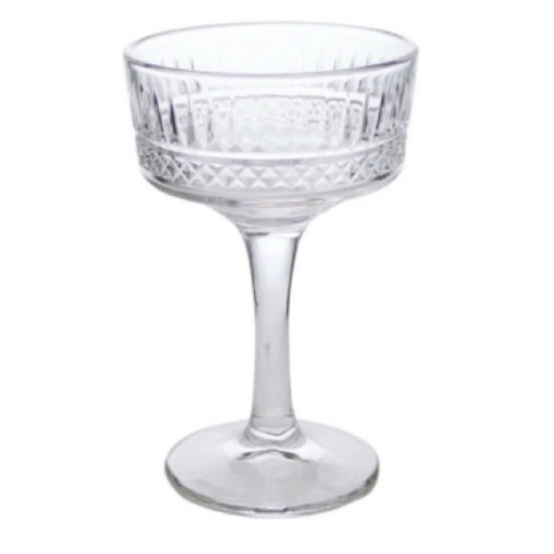 レトロなフォルムの美しいデザインが目を引く、ガラス製のクープ カクテルです。