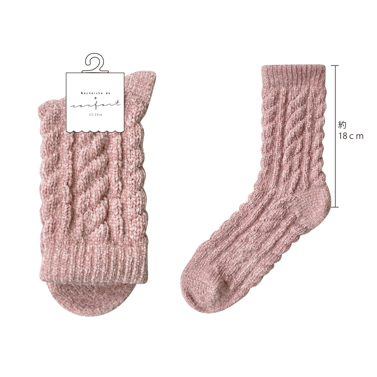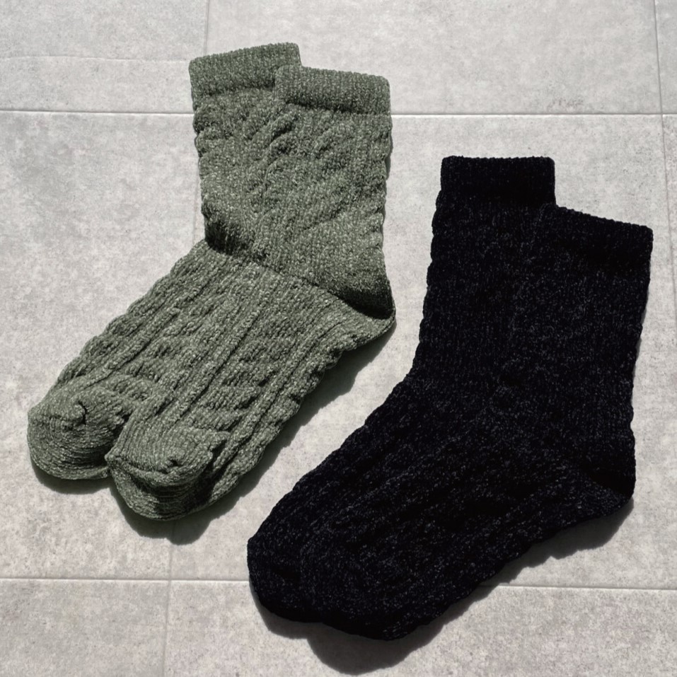 もこもことした肉厚のケーブル編みで、秋冬の足元に季節感をプラスしてくれます〇