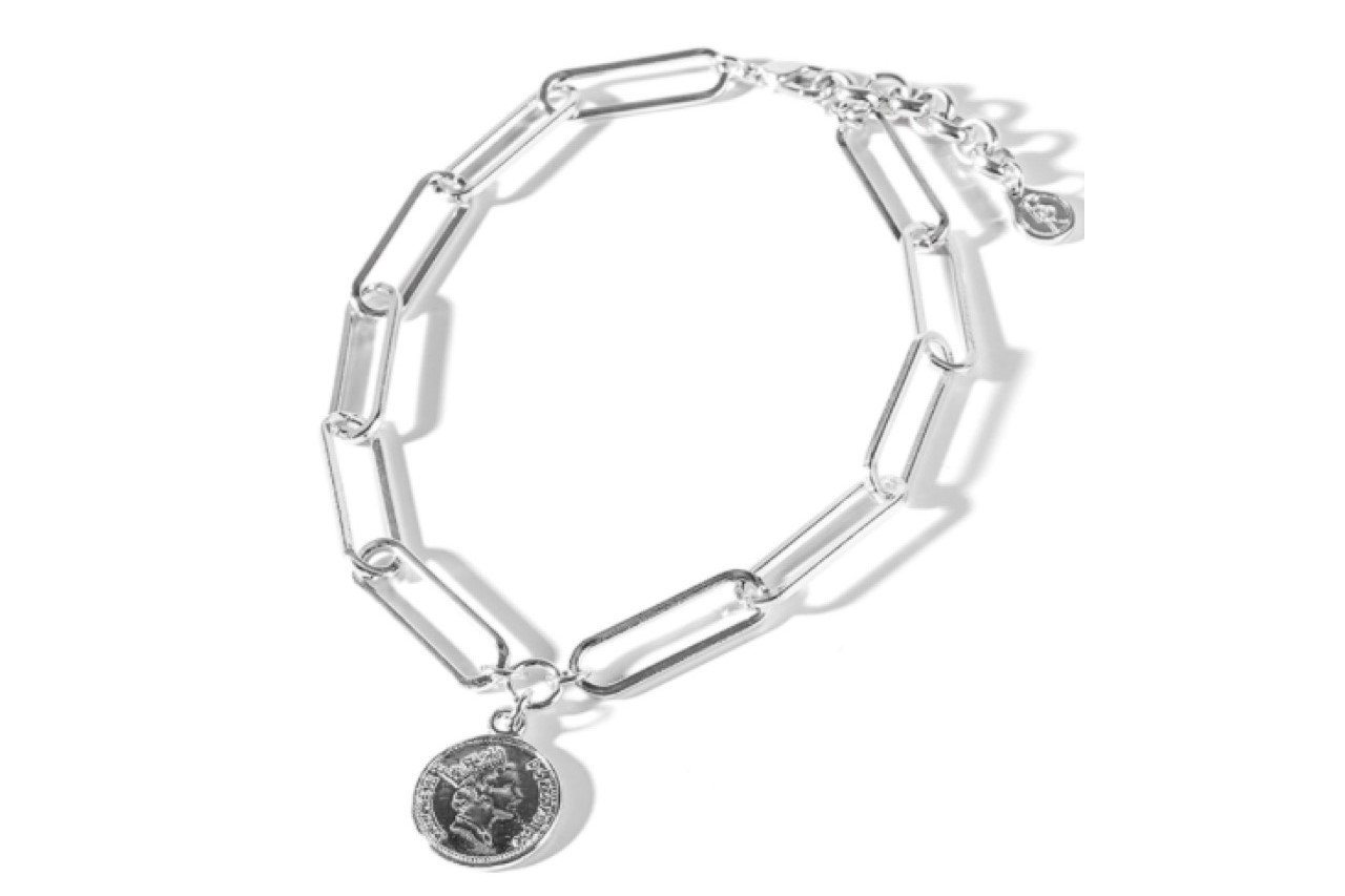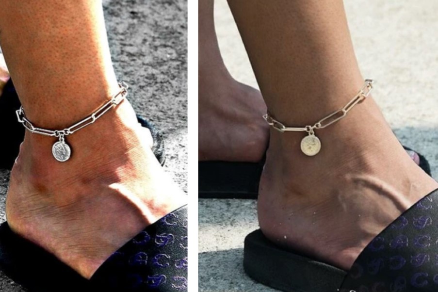 夏の足元にアクセントを加えるコインチャームのアンクレット。