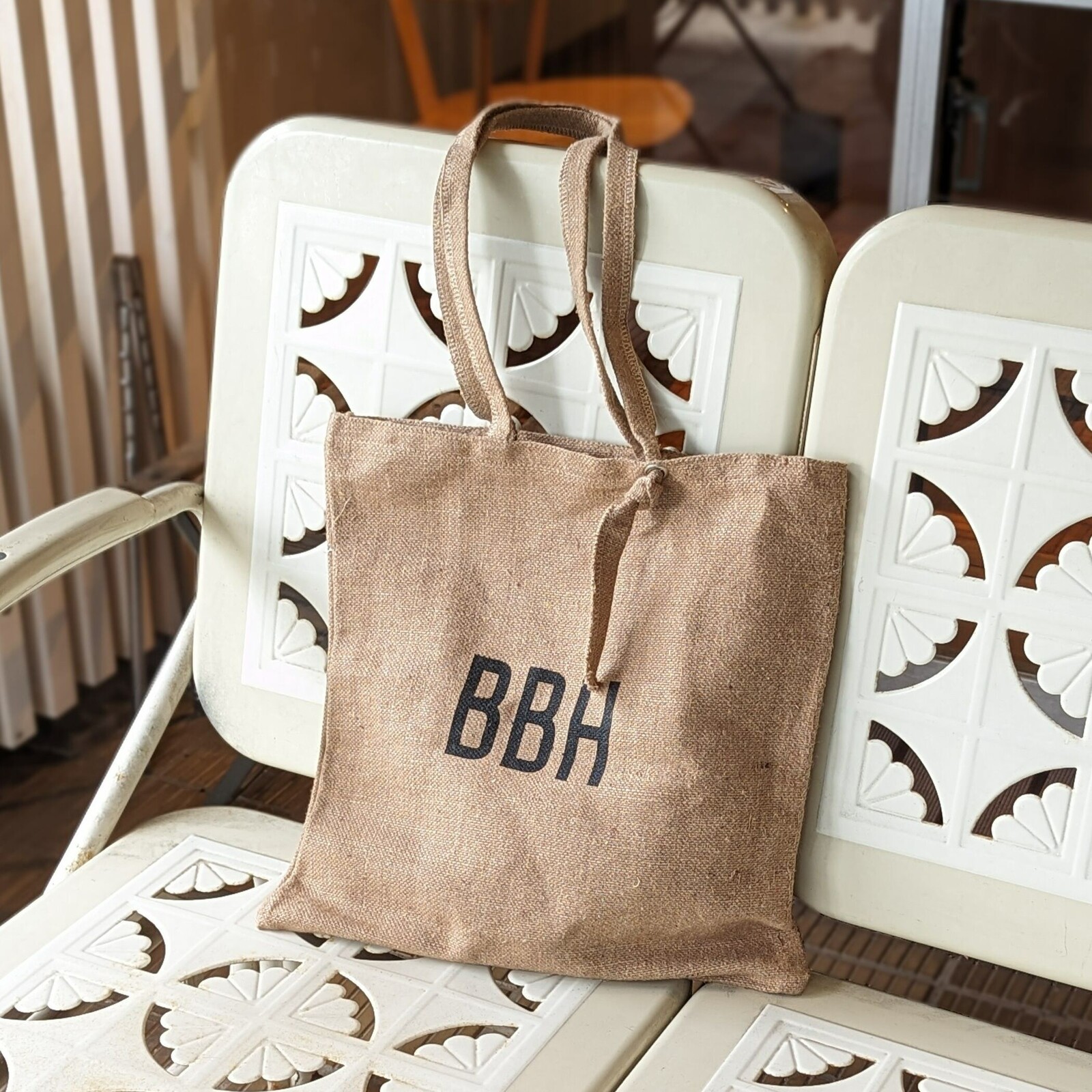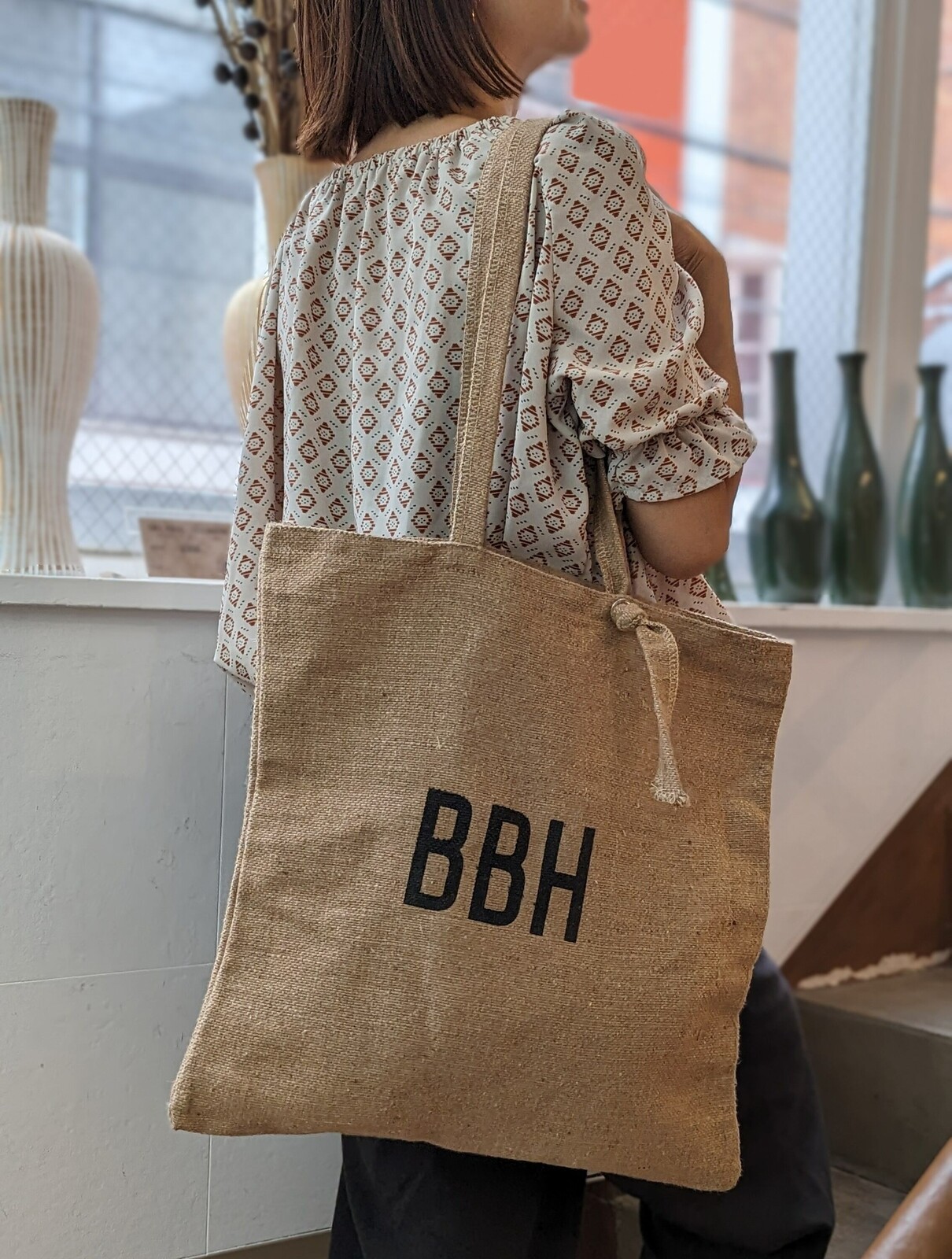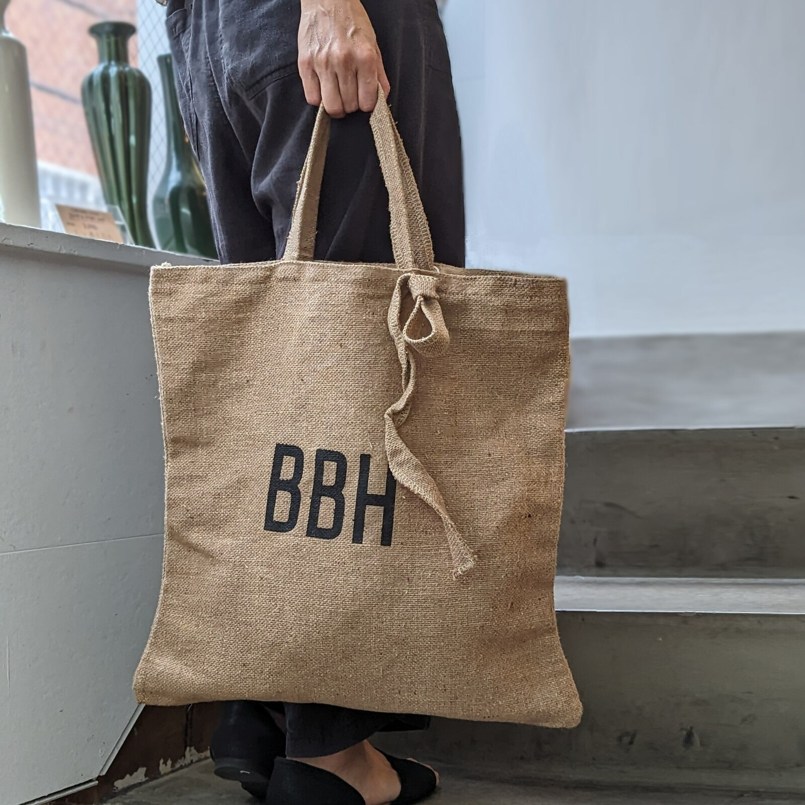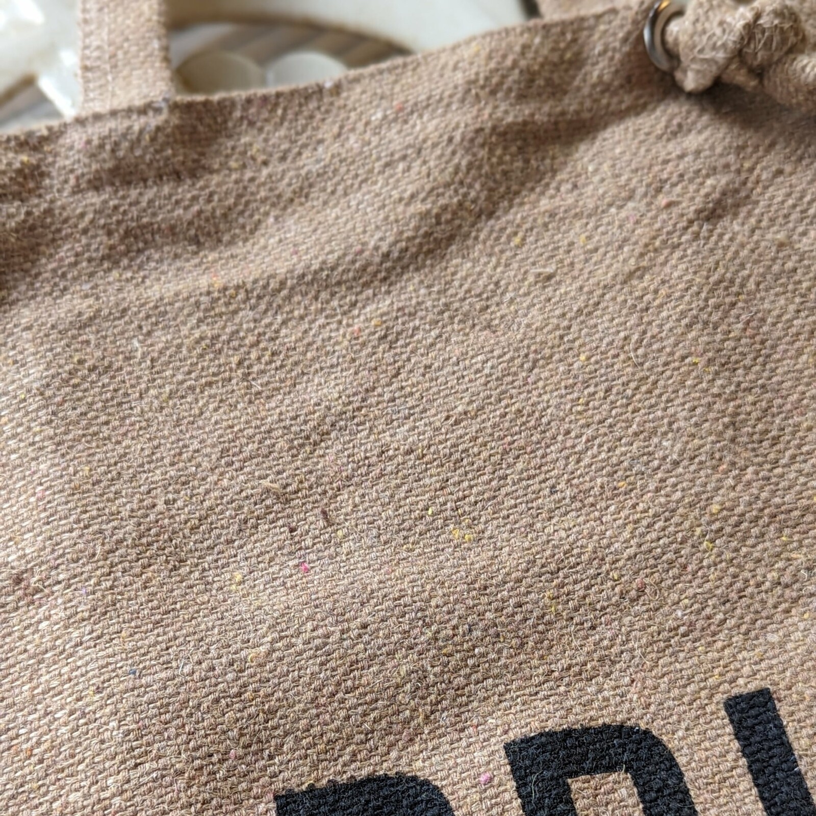厚手コットンジュート素材のスクエア型トートバッグ。