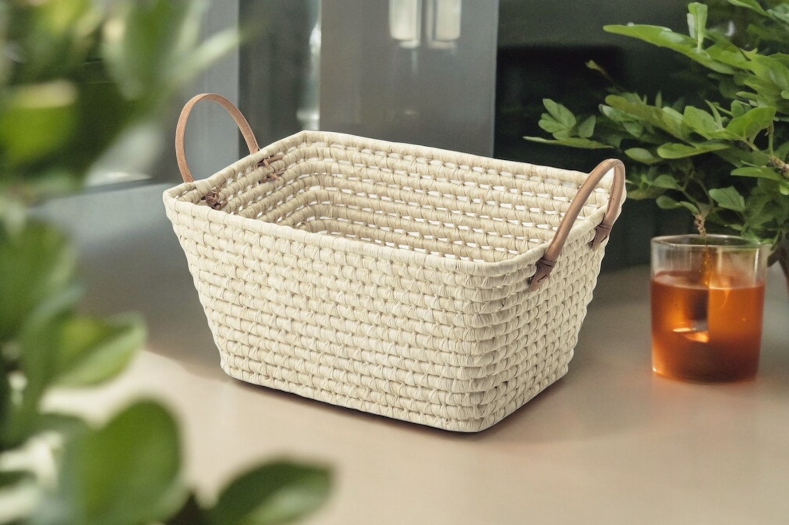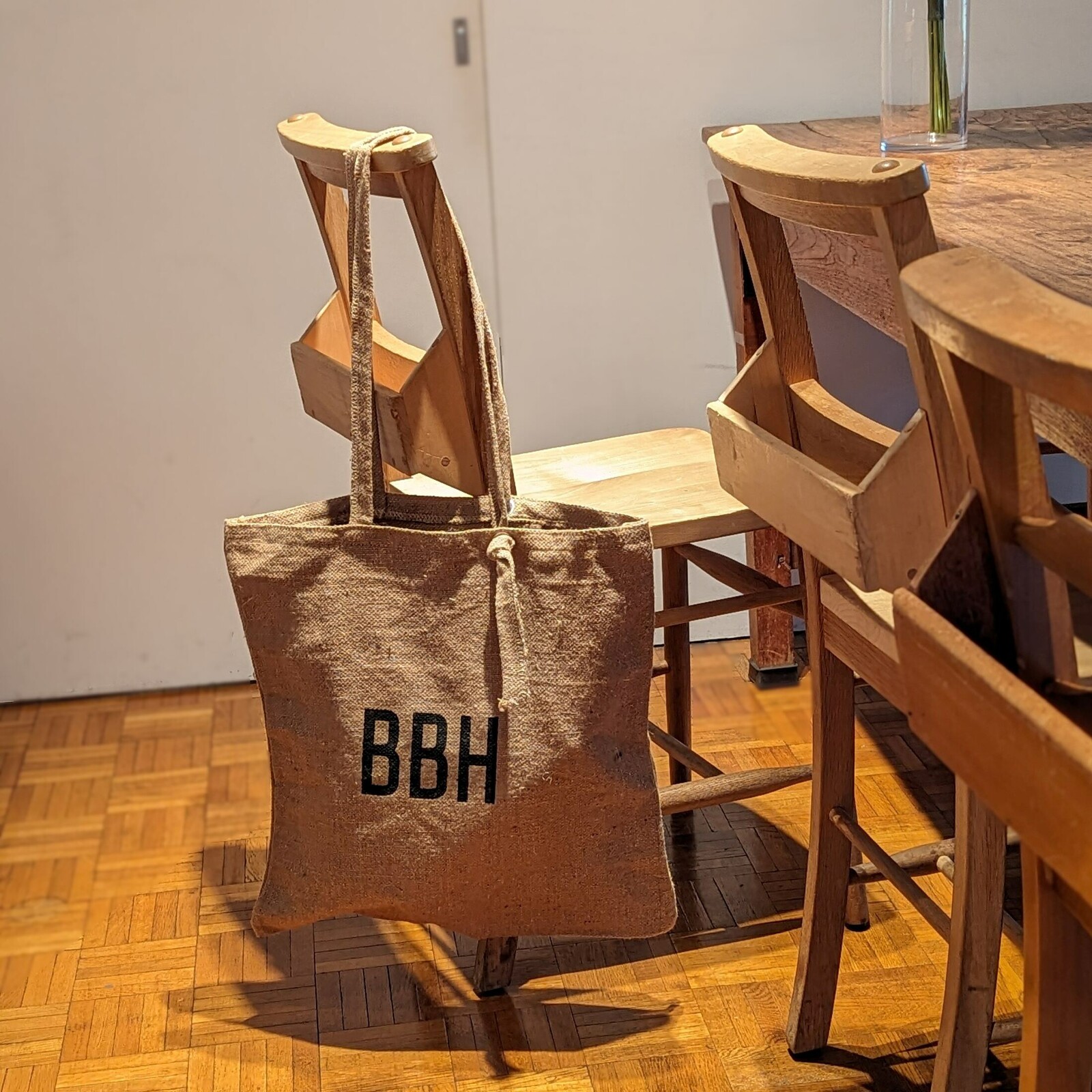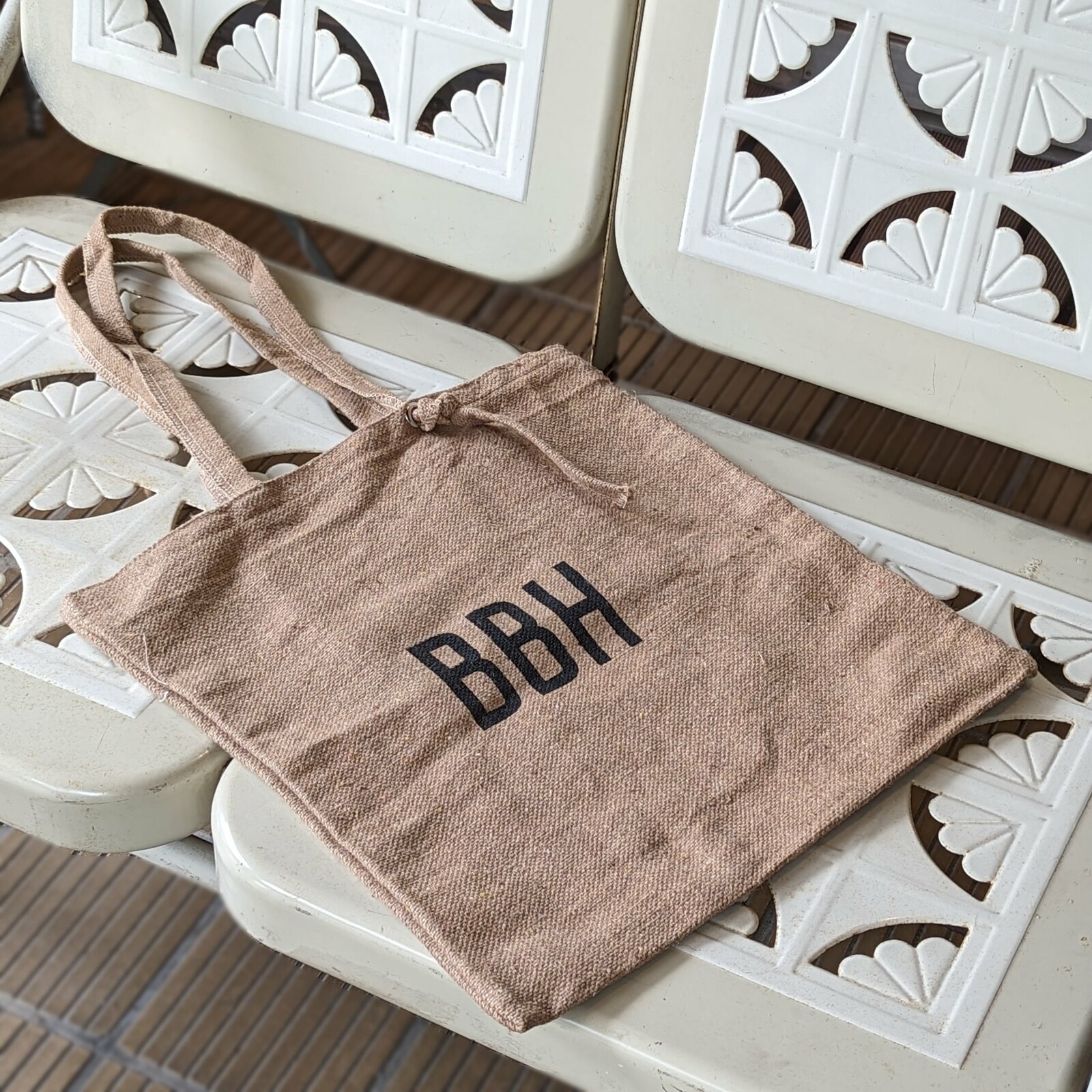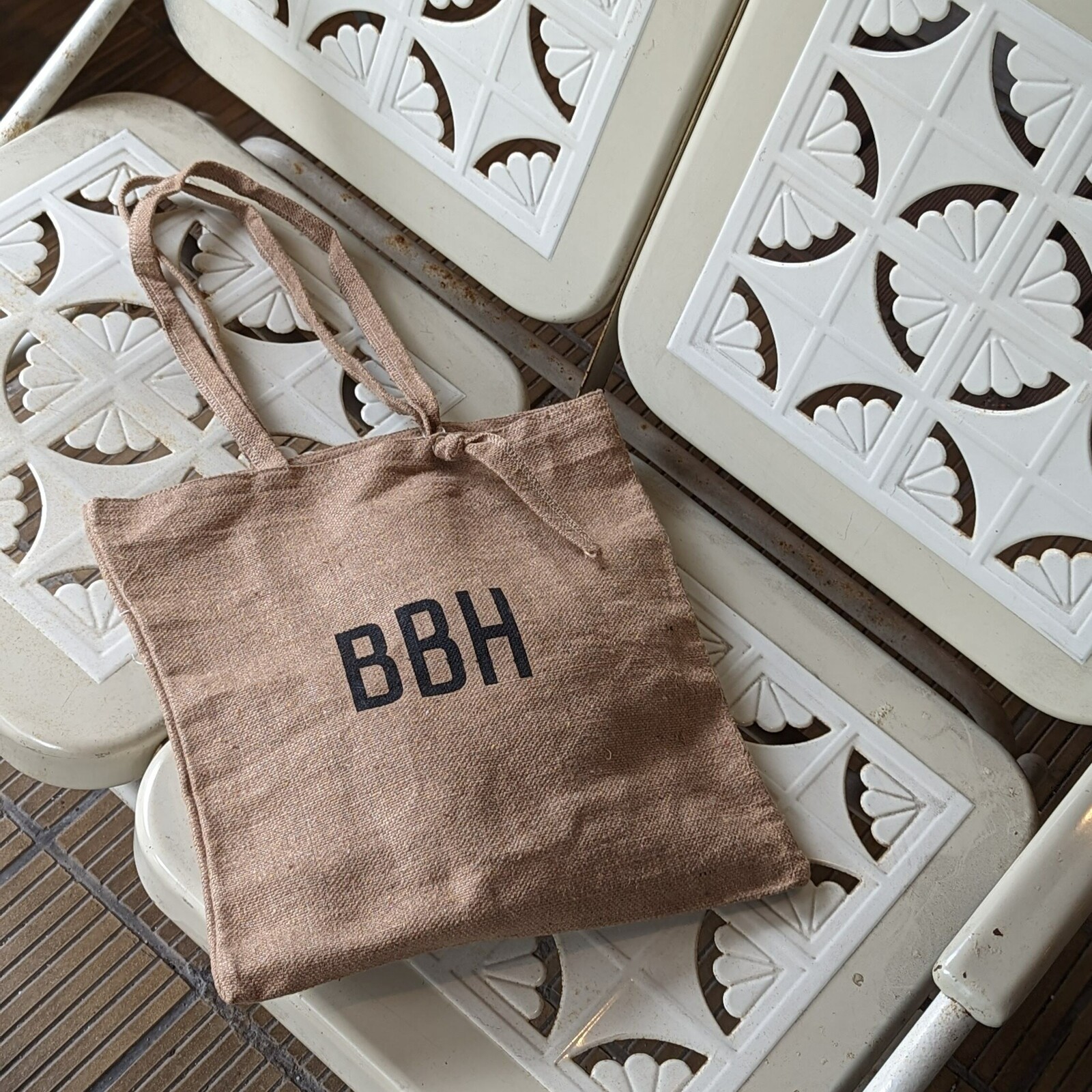 厚手コットンジュート素材のスクエア型トートバッグ。