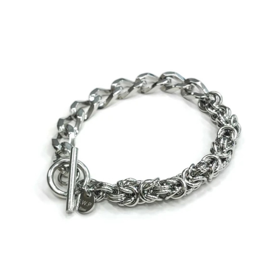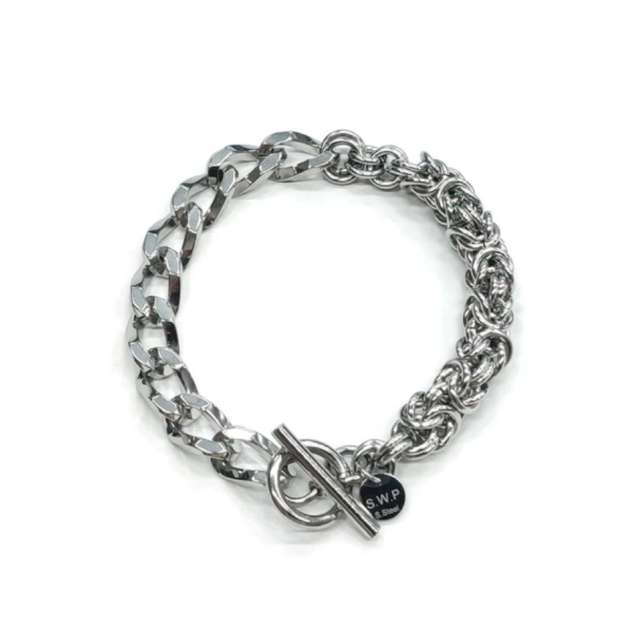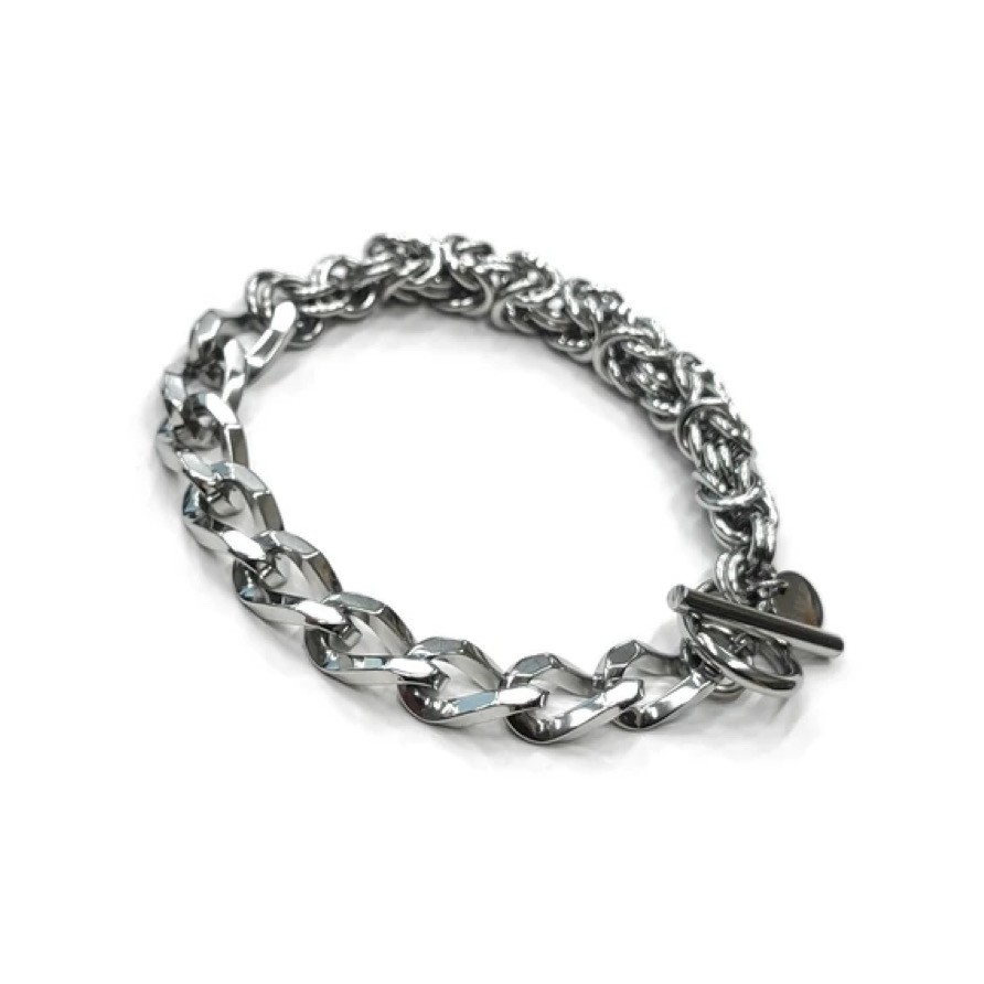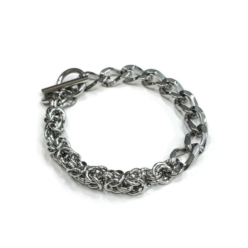 金属アレルギーを起こしにくく人体に優しいステンレススチール素材を使用したチェーンブレスレット。