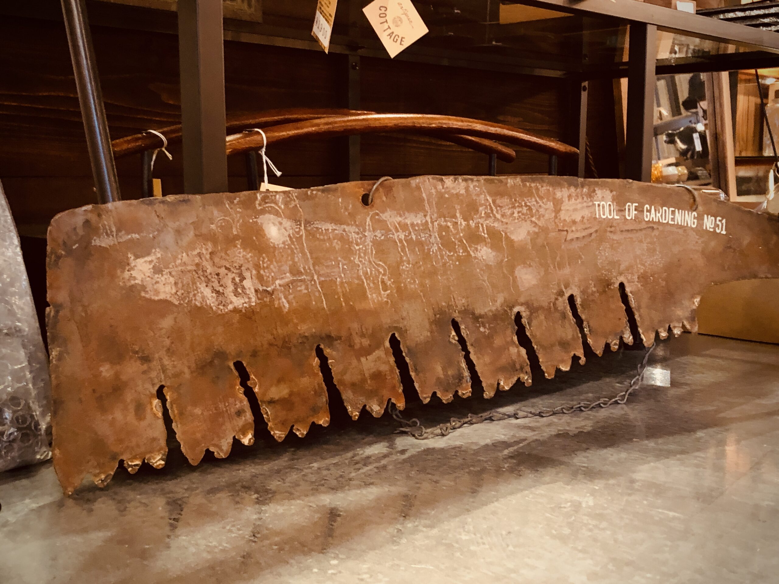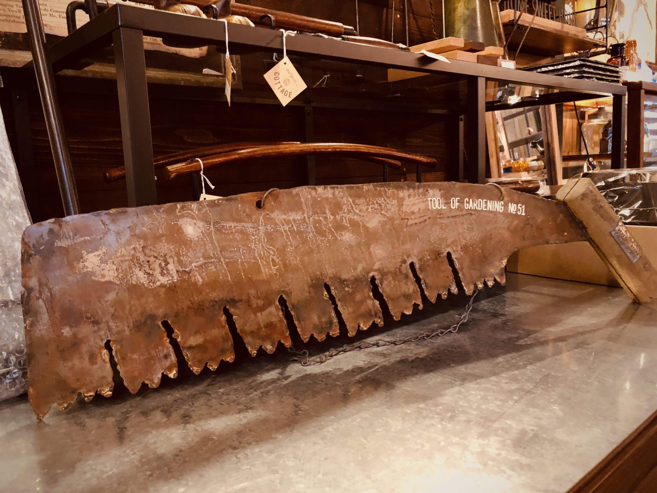 ドラム缶リサイクルし、作られたのこぎり型のサインボード。