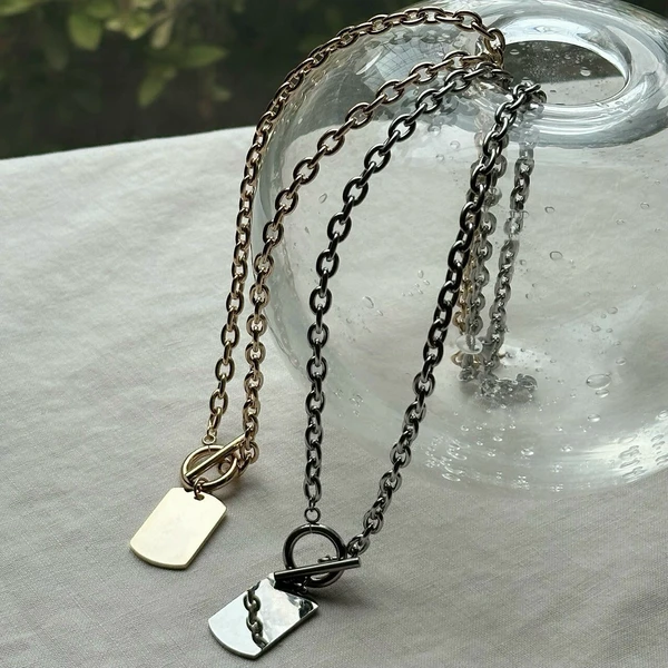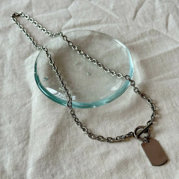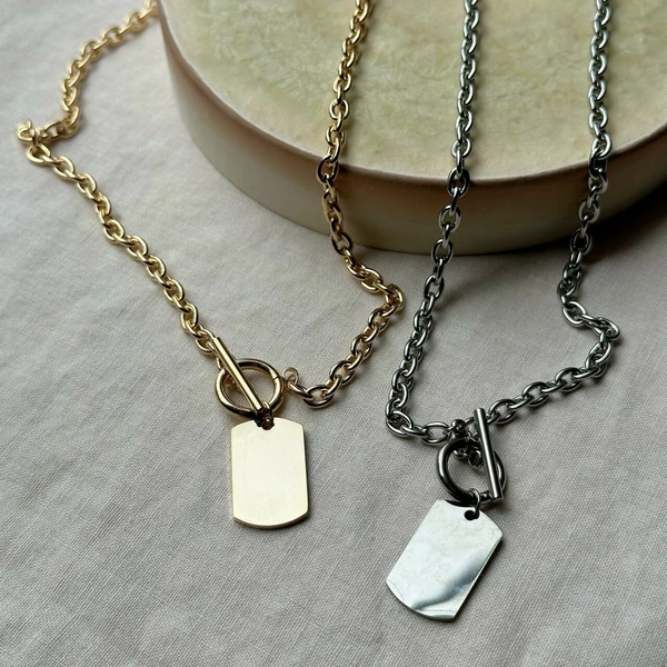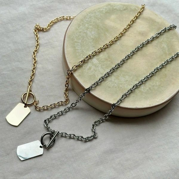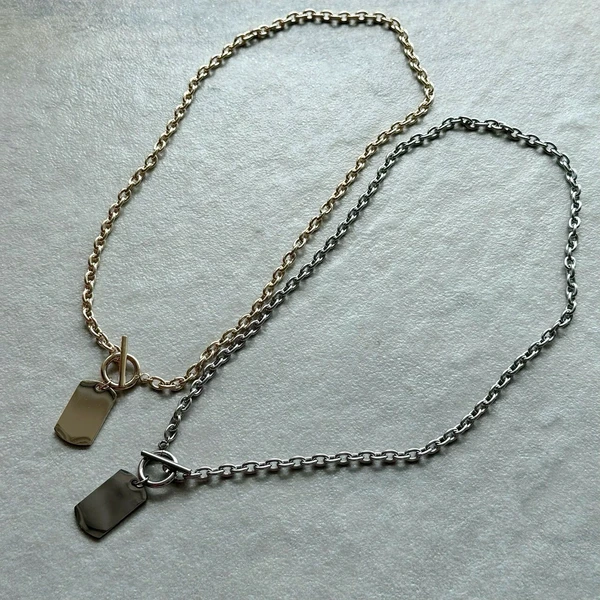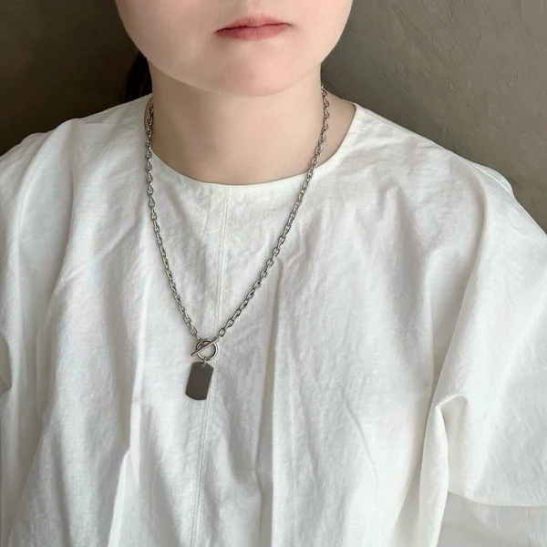 ドッグタグとマンテルの組み合わせがポイントのサージカルステンレスネックレス。