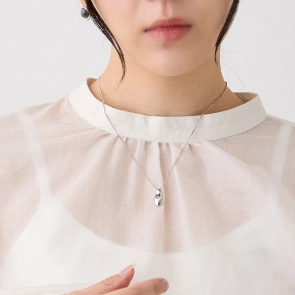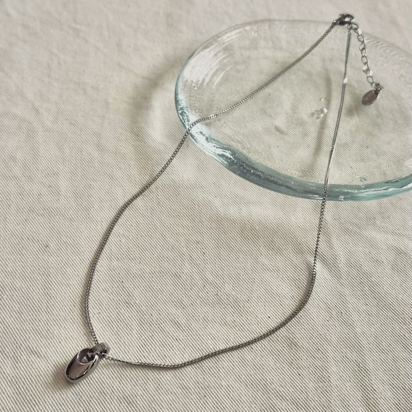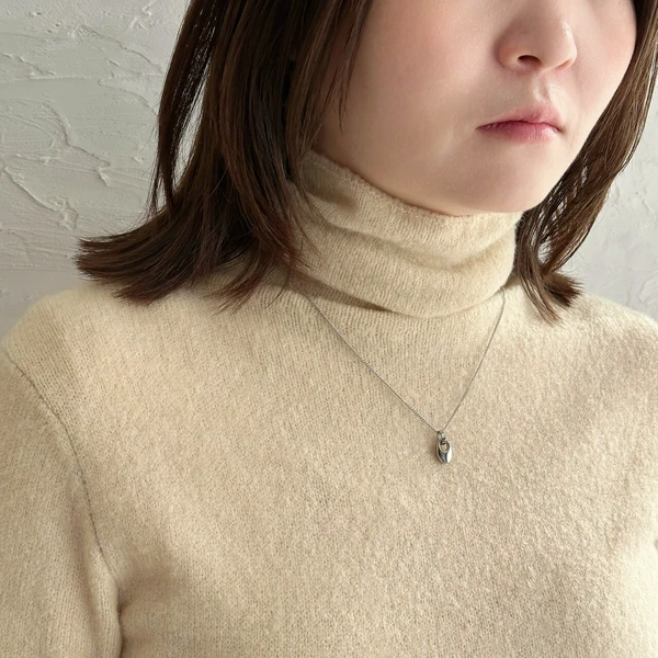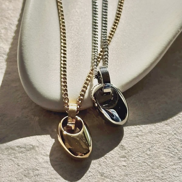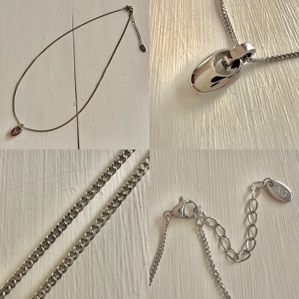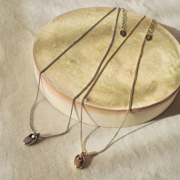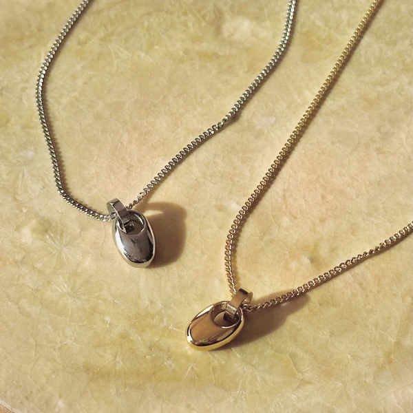 丸みを帯びたオーバル型のモチーフがアクセントのサージカルステンレスネックレス