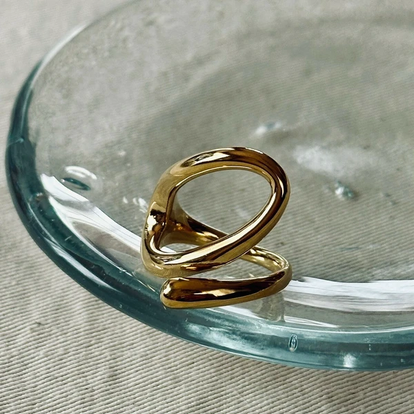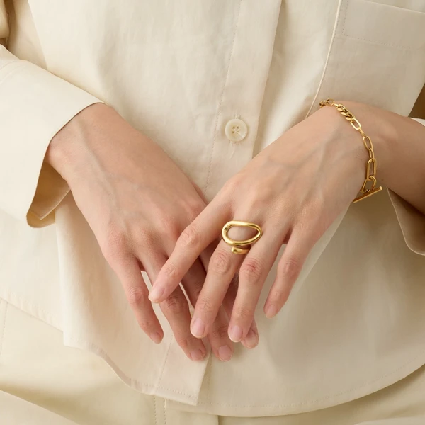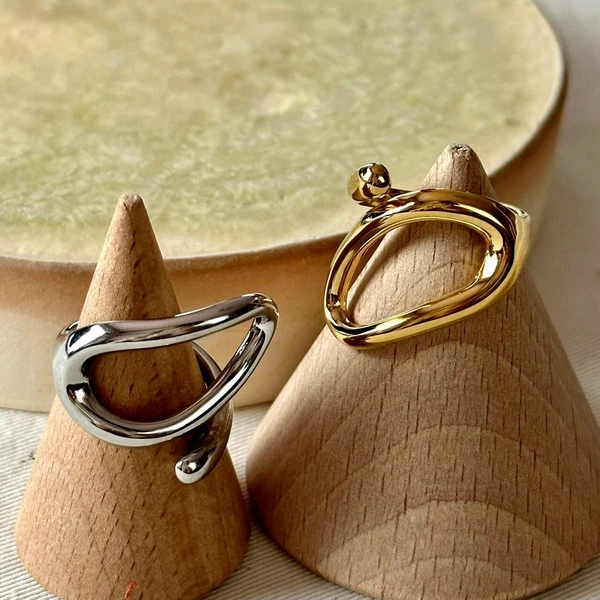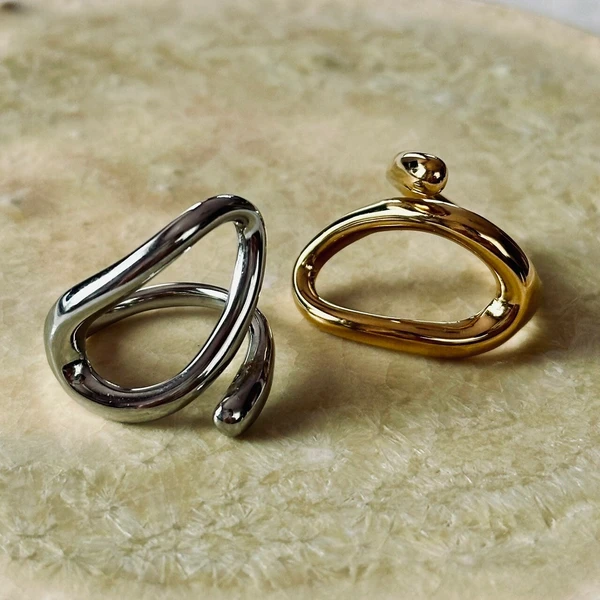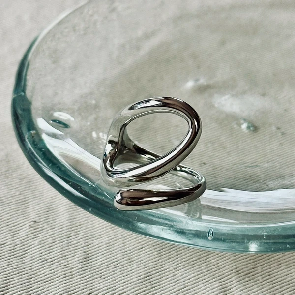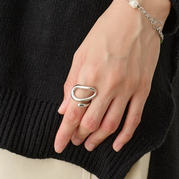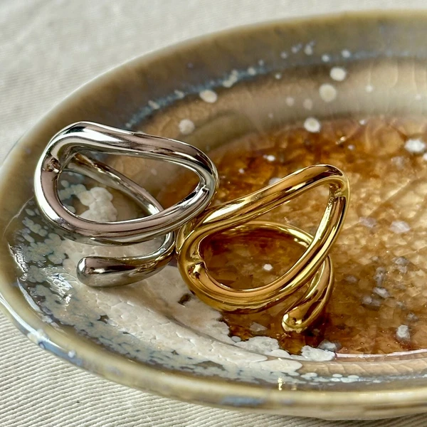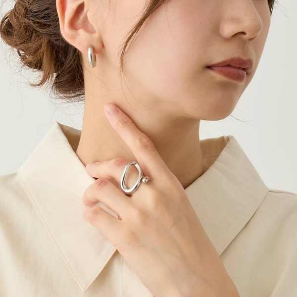 丸みのあるパイプと指に添うような造形美が個性的で美しいサージカルステンレスリング。