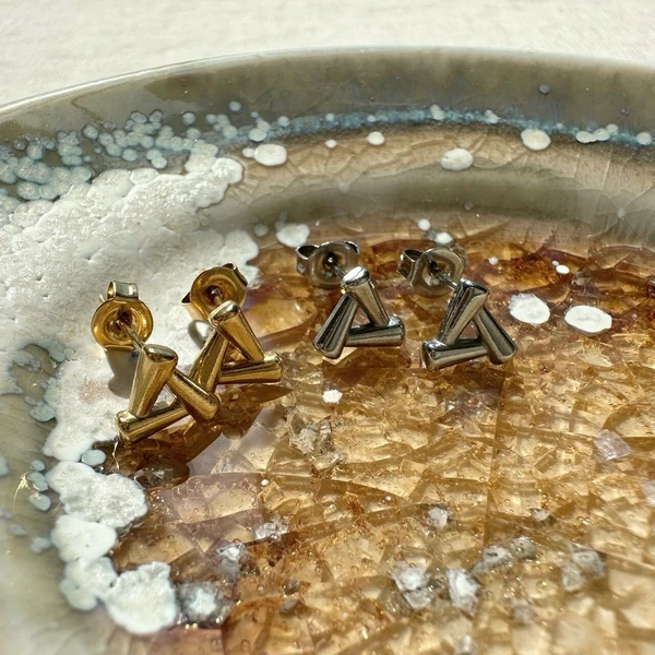 トライアングルシルエットのサージカルステンレスミニピアス。