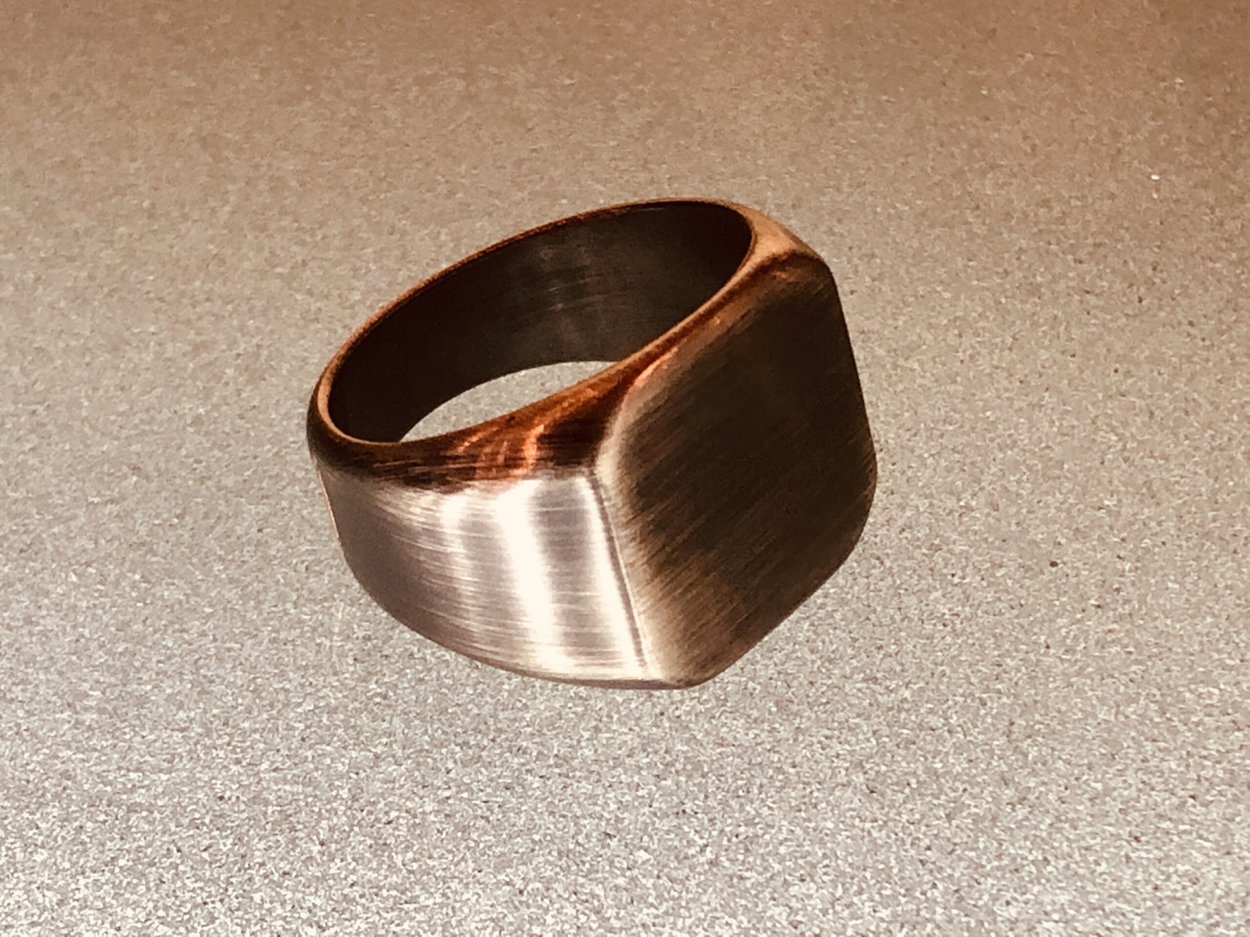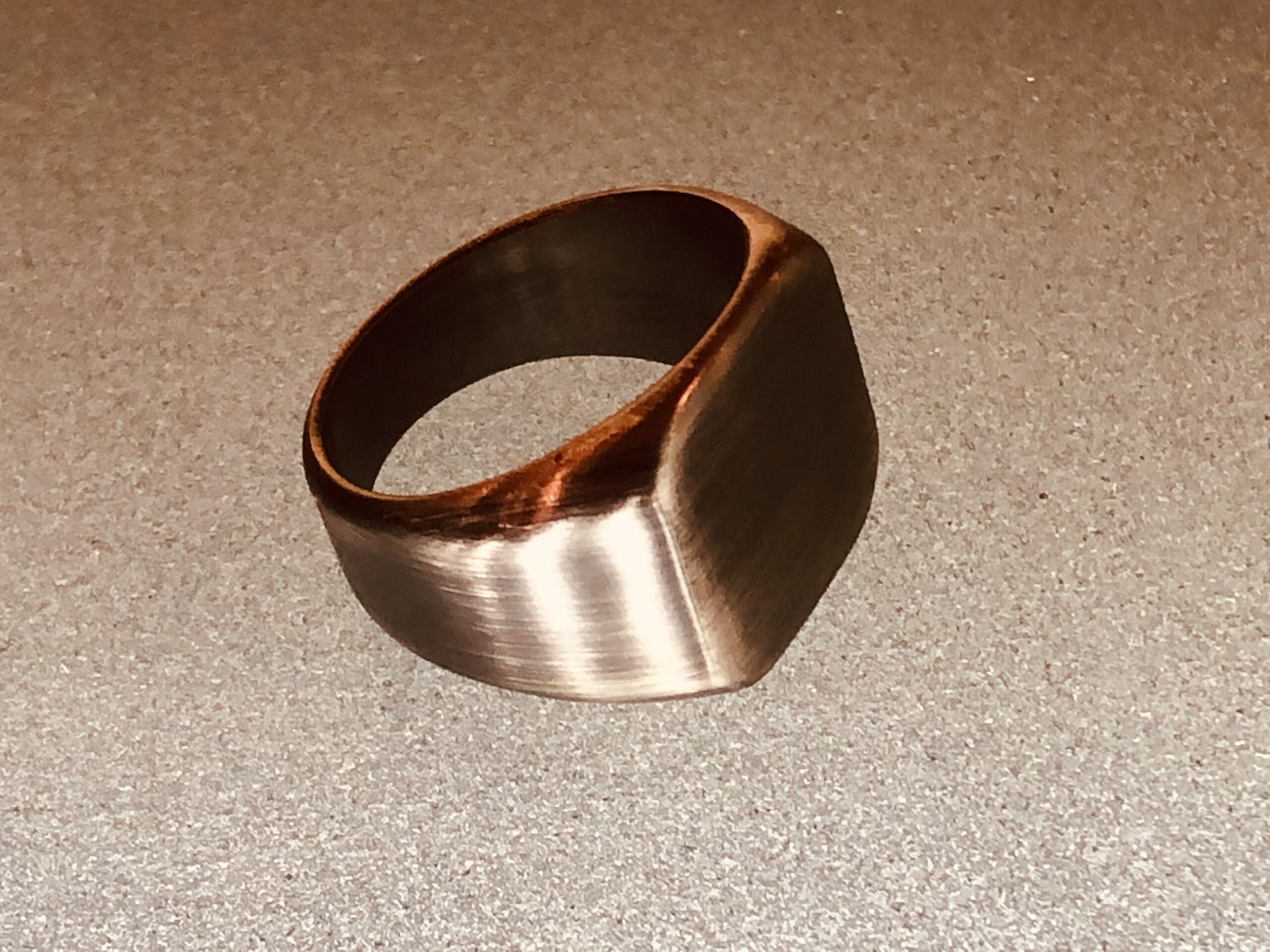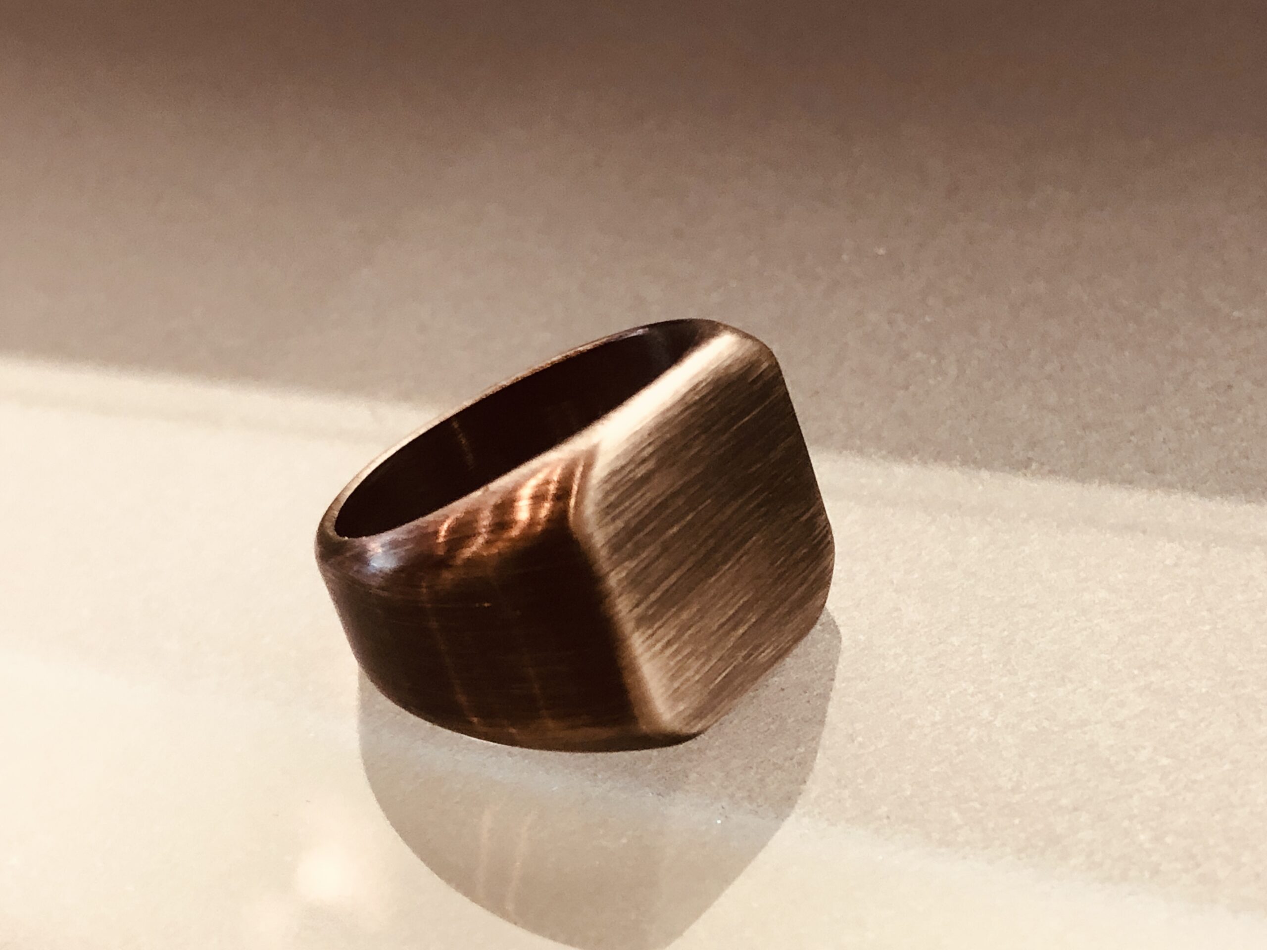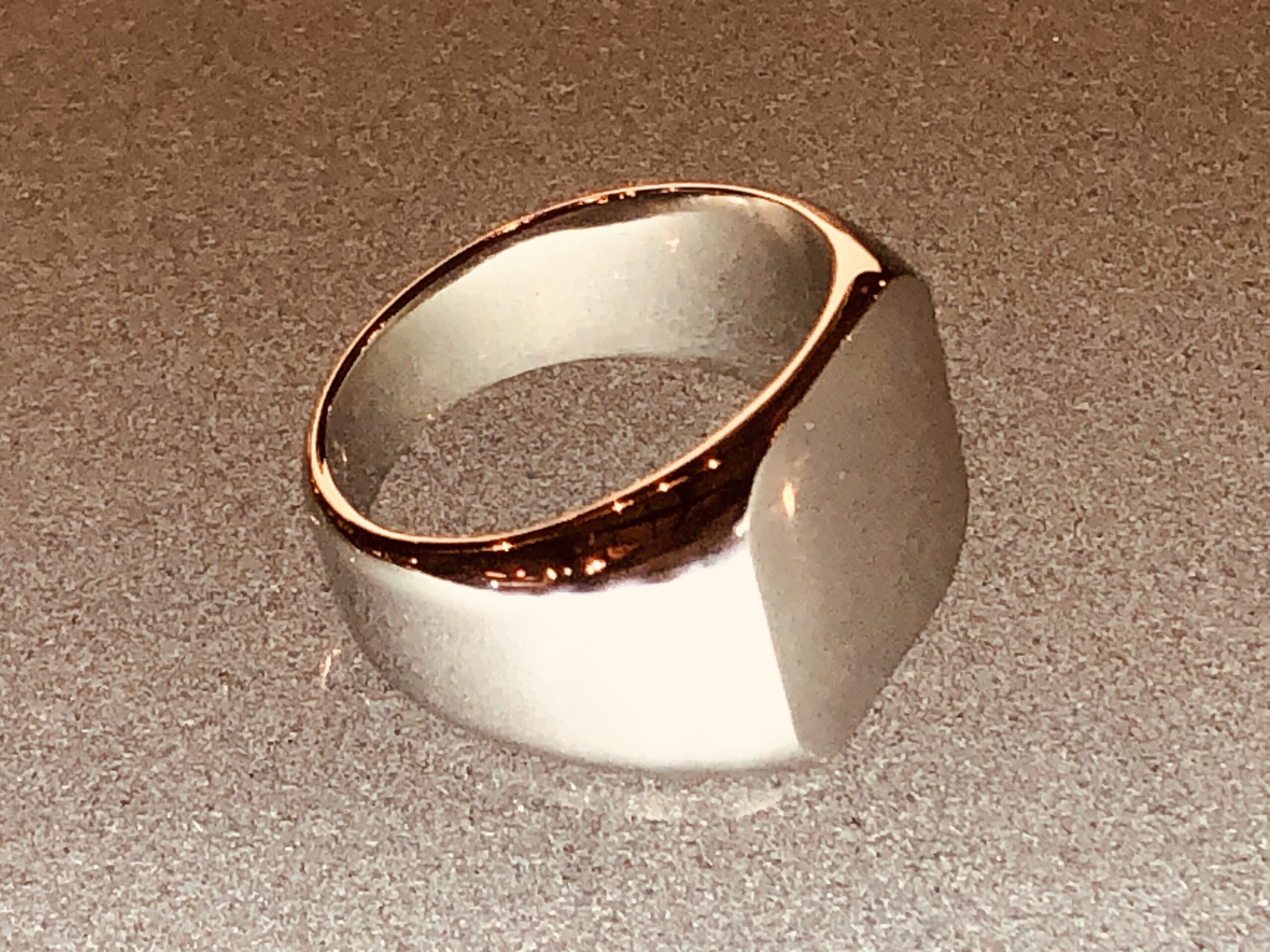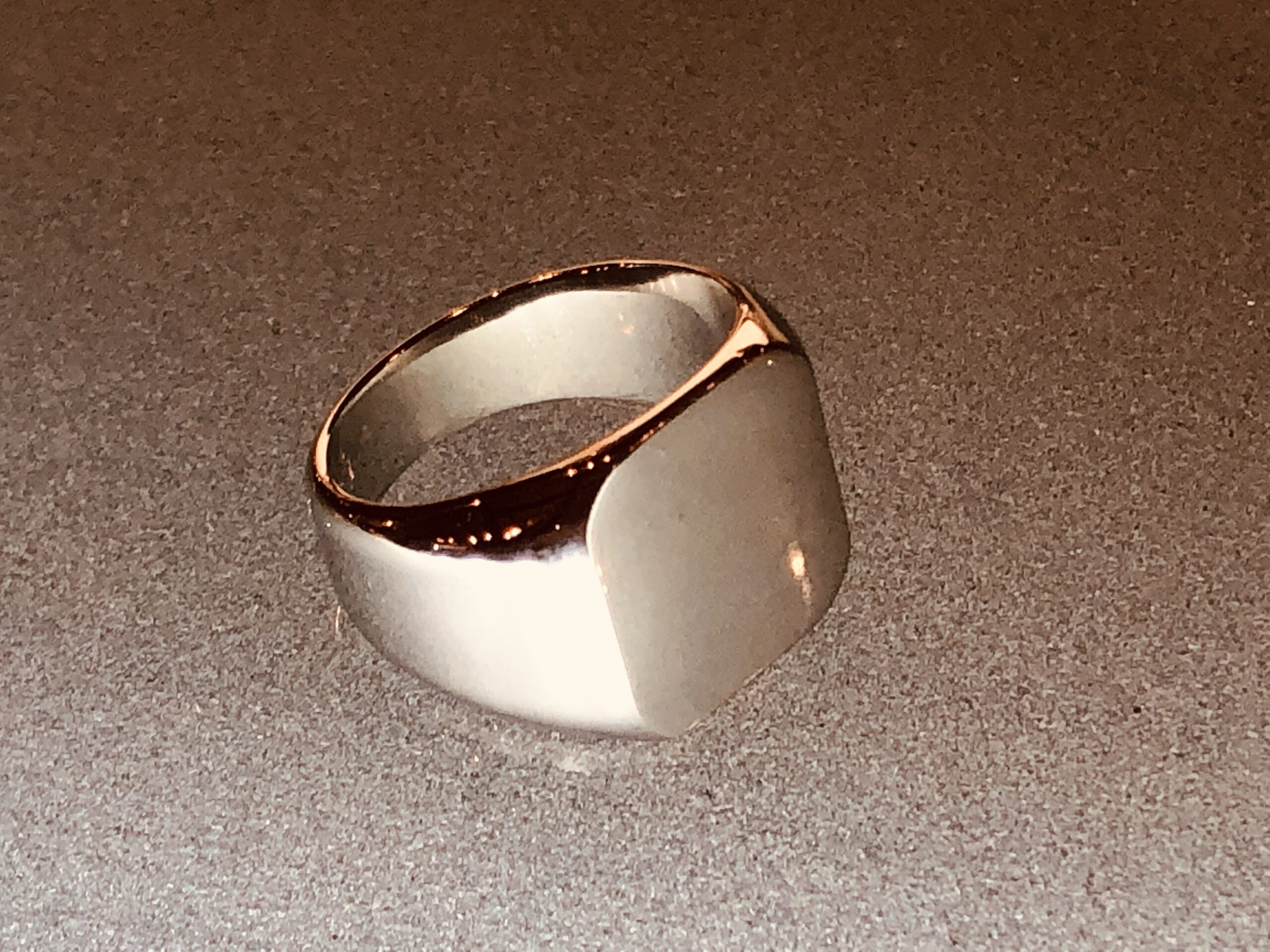 シンプルでソリッドな面構成が美しいシグネットリングデザイン。