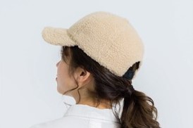 ふんわり毛足が短めのシャギーが可愛いアクセントのキャップ。