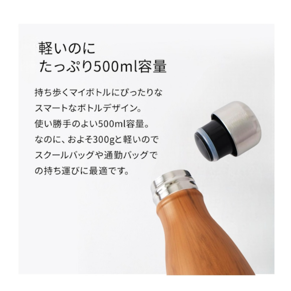 本体は500mlの容量でありながら約300gと軽く、ステンレスの真空二重構造により熱が逃げにくく、
