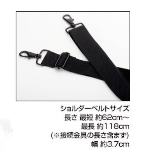 ショルダーベルトサイズ : 長さ 最短 約64.5cm〜最長 約124cm/ 幅 約2.5cm (※接続金具の長さ含まず)