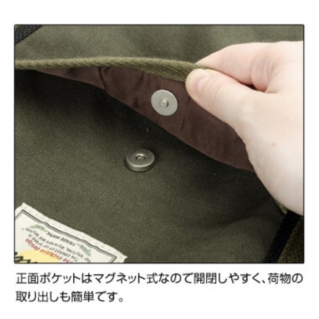 正面ポケットサイズ : タテ 約19.5cm/ ヨコ 約18cm/ マチ 約0cm
