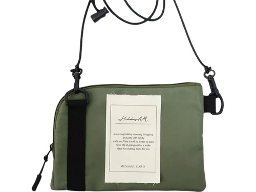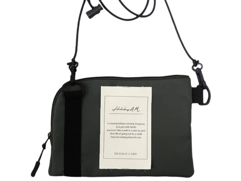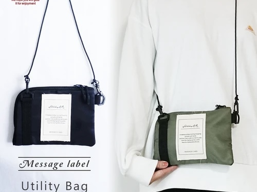 メッセージラベルが付いたデザインがお洒落な小さいサイズのショルダーバッグです。