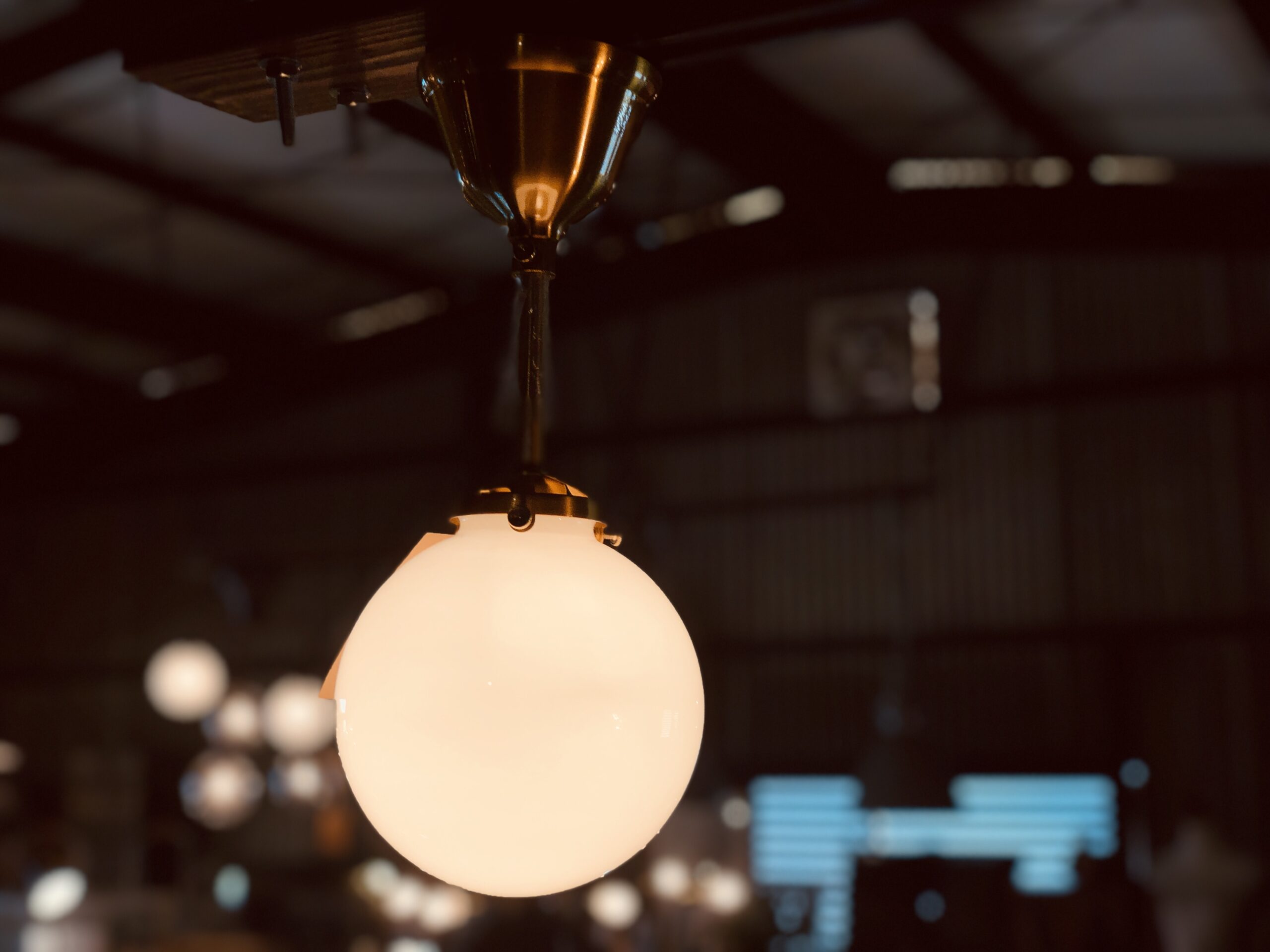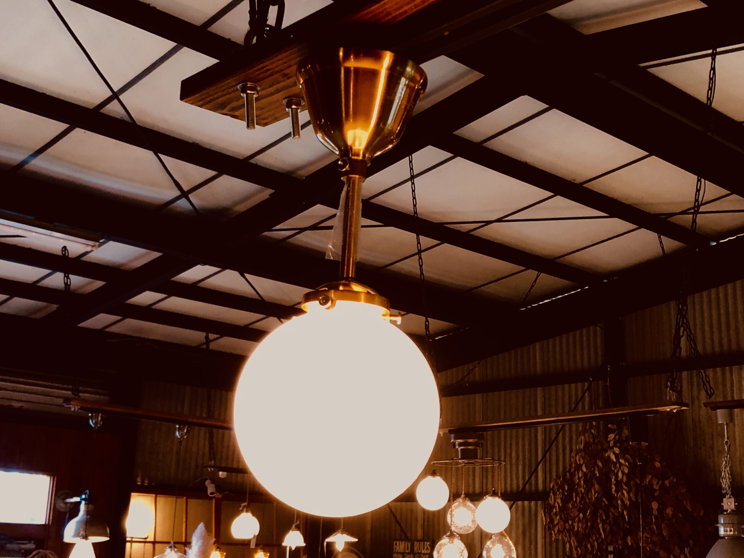 シンプルなガラスシェードに、ブライトゴールドの組み合わせが