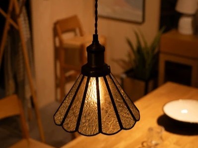 シンプルだけど可愛らしいステンドグラスは消灯時にも立体的なデザインがインテリア