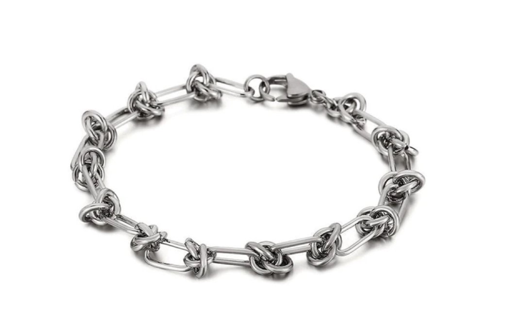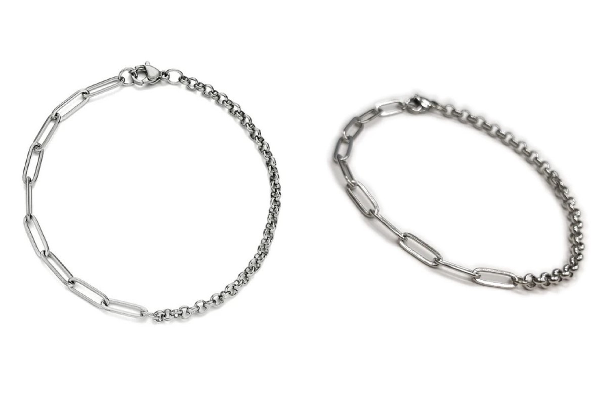 キズに強い美しい表面と丈夫な素材感、アレルギーを起こしにくいStainlessSteel素材を使用したチェーンブレスレット。