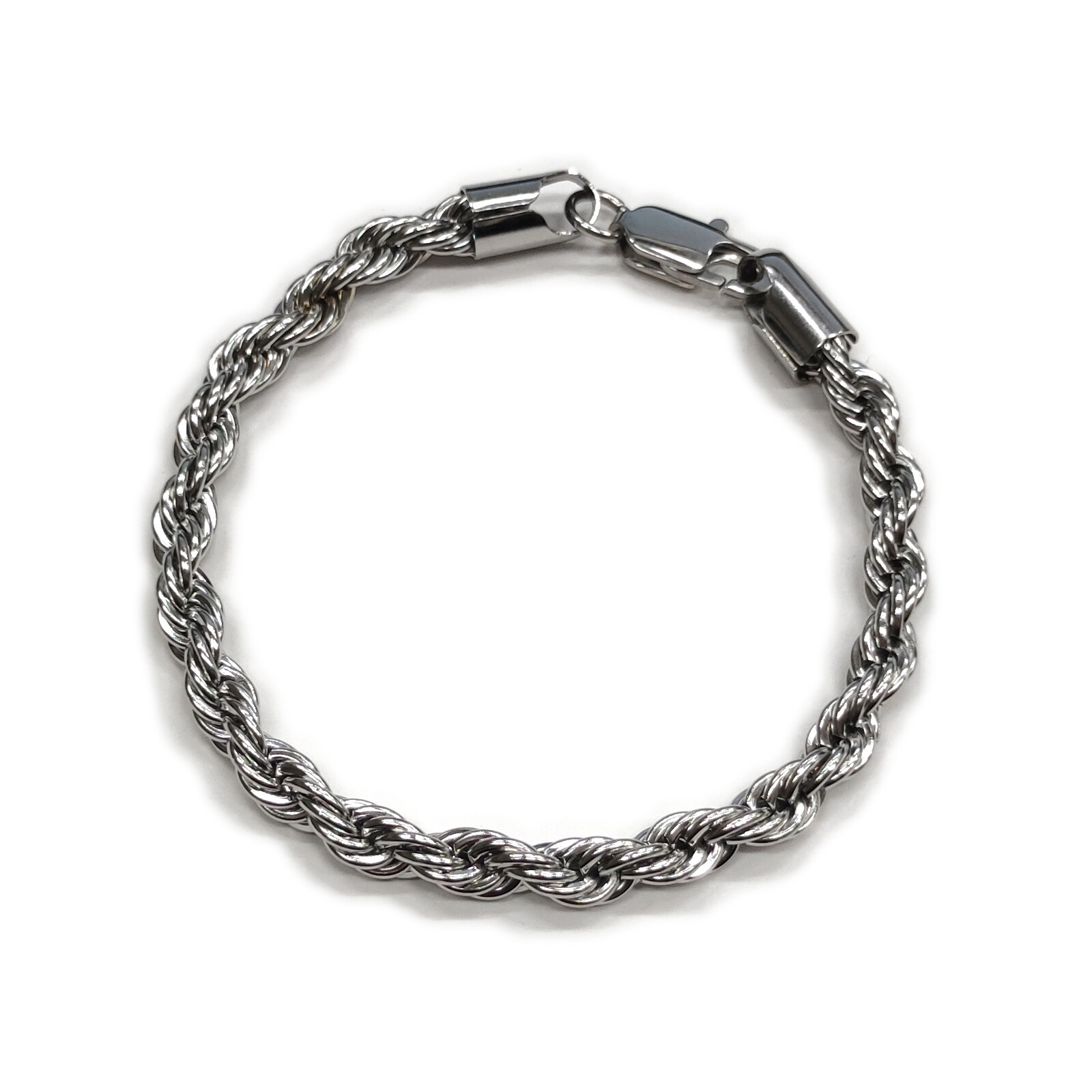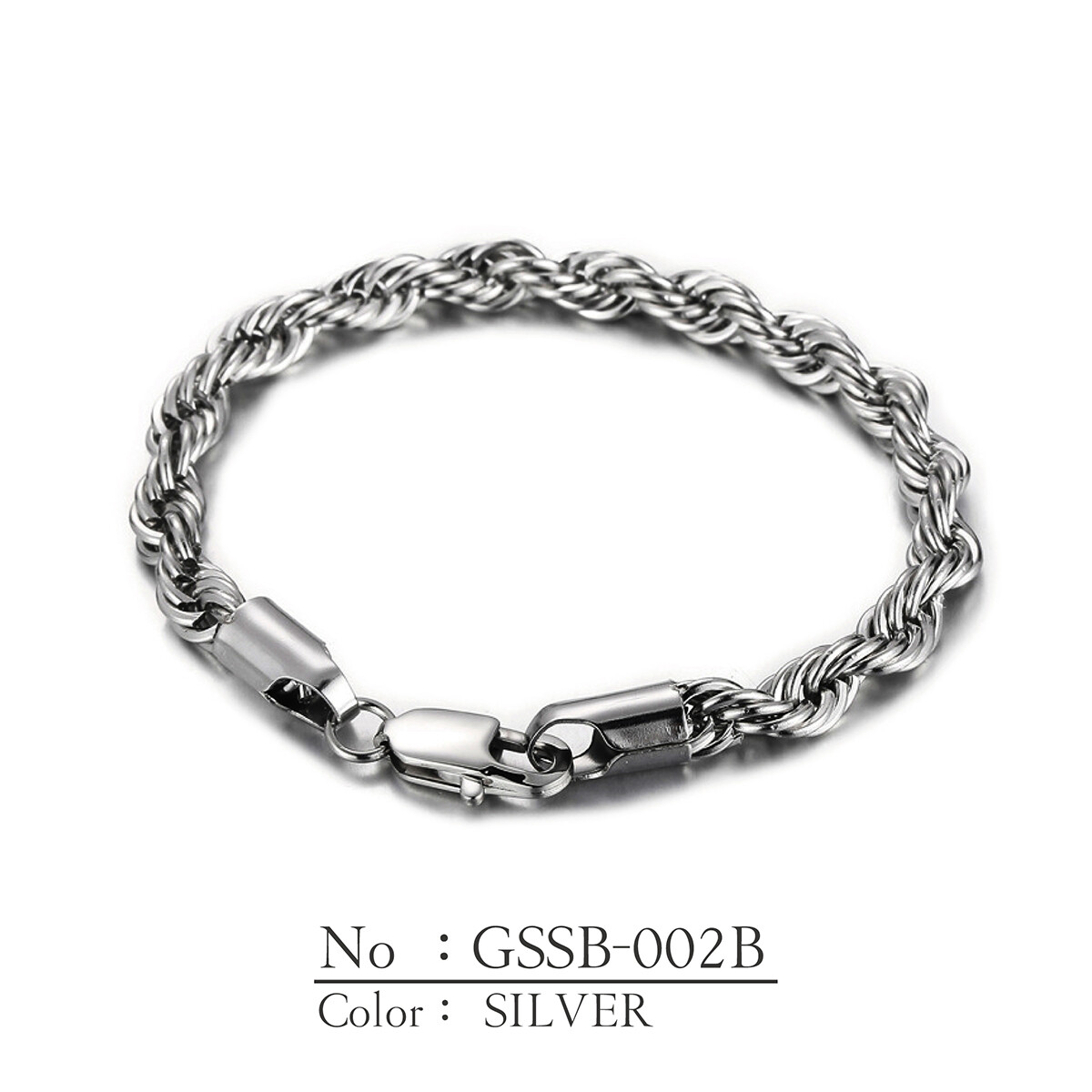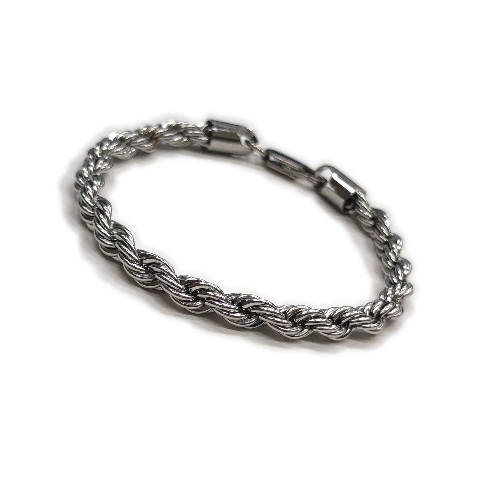 キズに強い美しい表面と丈夫な素材感、アレルギーを起こしにくいStainlessSteel素材を使用したチェーンブレスレット。