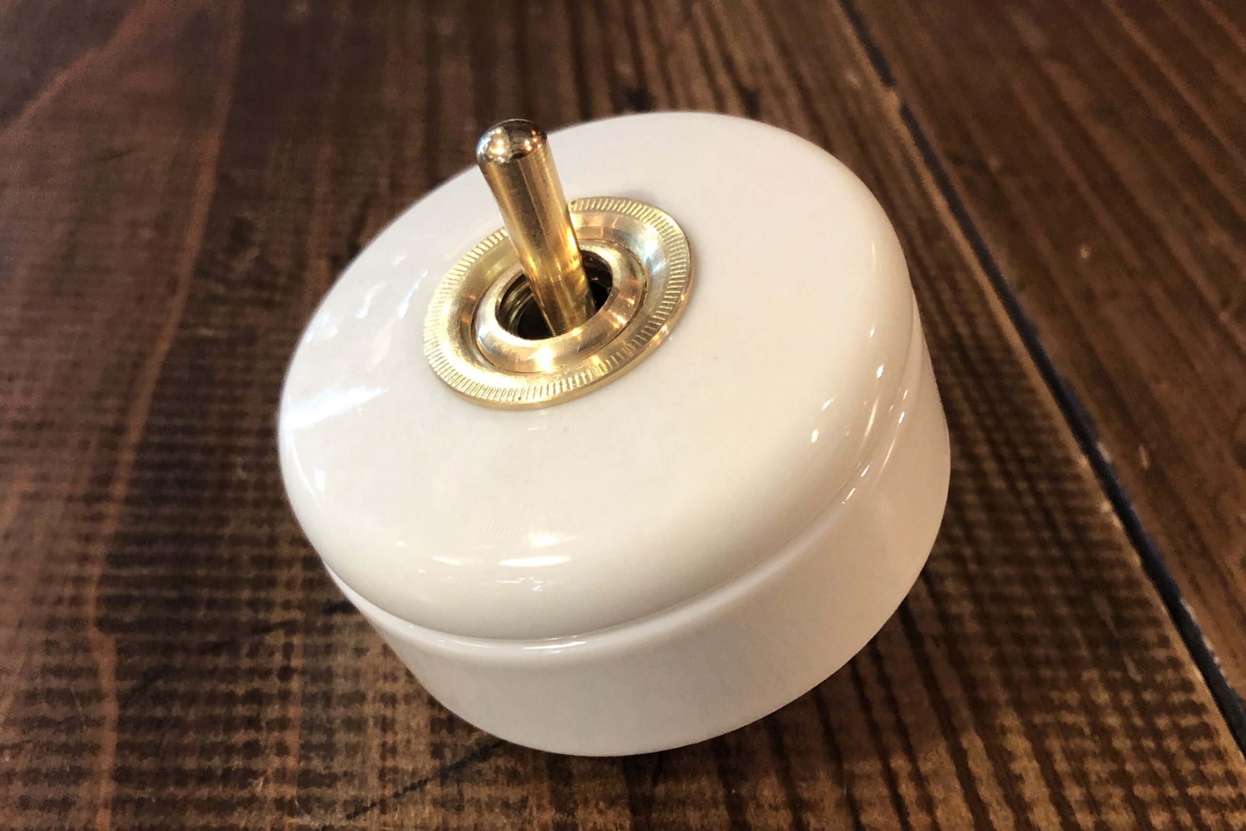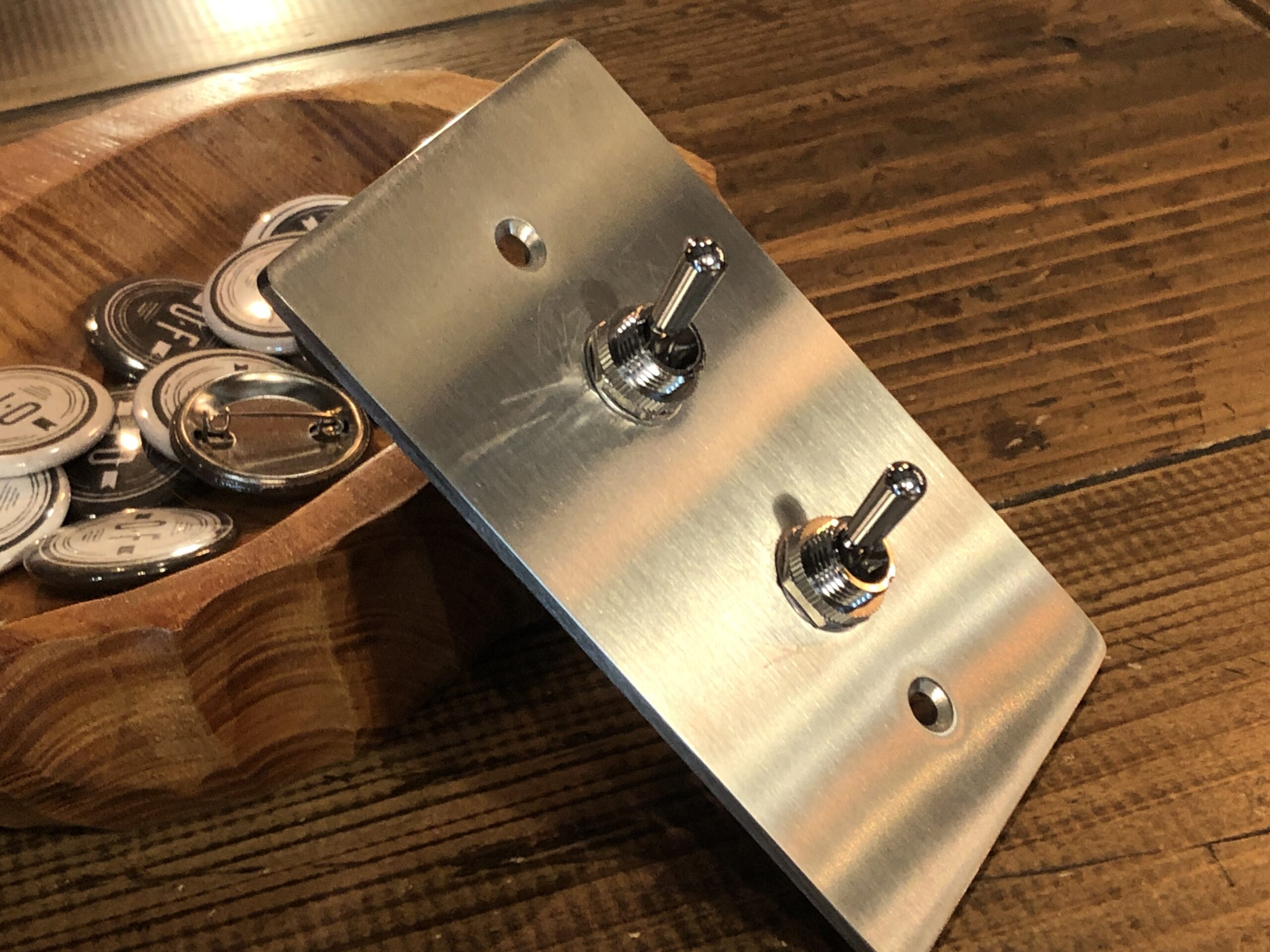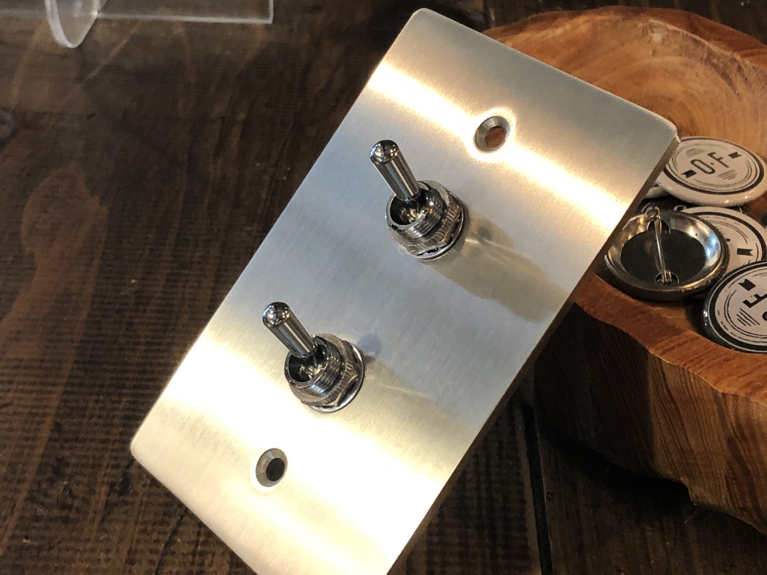 トグルスイッチ:突起状のトグル部分を指でカチリ、と押し上げてON/OFFを切り替えます。ステンレス製なので経年変化が少なく、耐久性にも優れています。
