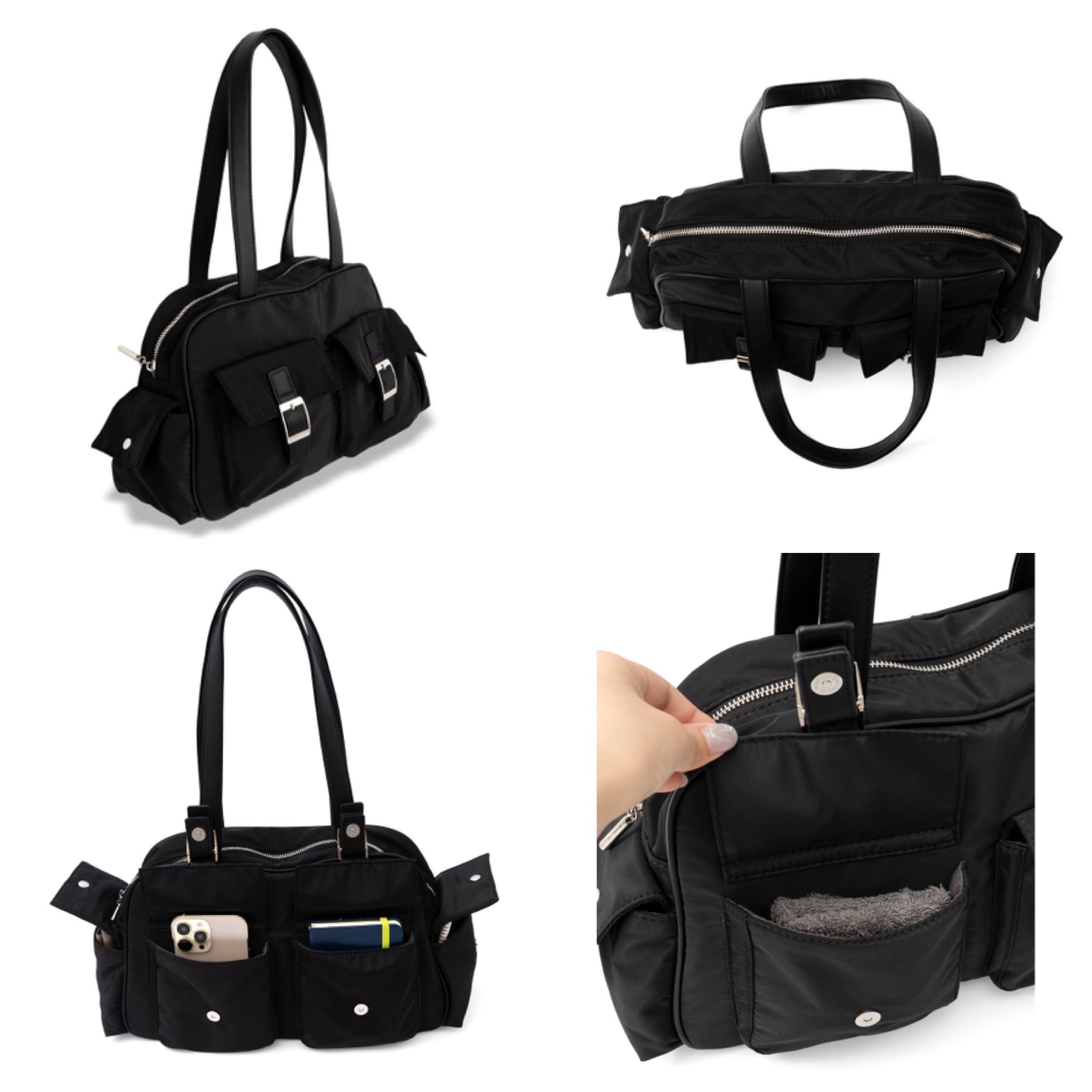 ●外ポケット:前面マグネット付きポケット2、側面マグネット付きポケット2、背面ファスナー付きポケット1