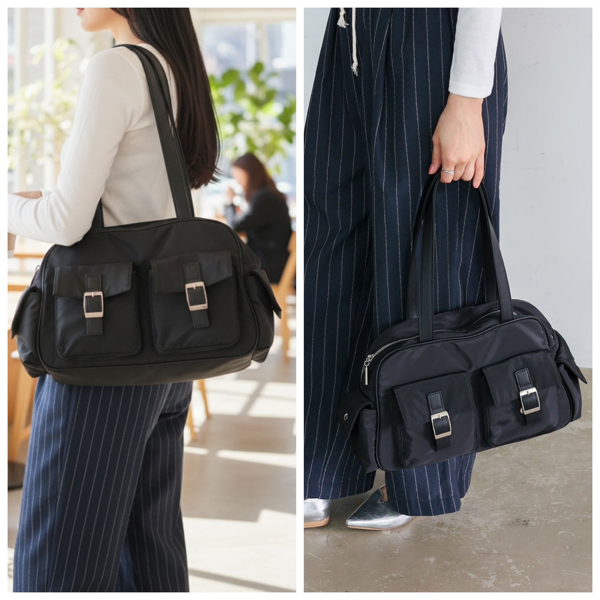 トレンドライクなポケットデザインに軽量ナイロンを