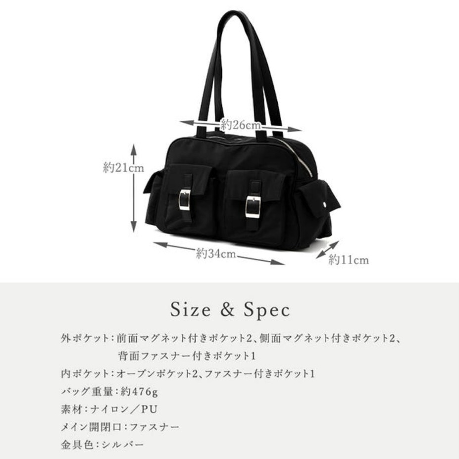 ●SIZE:高さ:約21cm / 幅:約約26cm(上辺)約34cm+サイドポケット約3cm×2(下辺)cm / マチ:約11cm